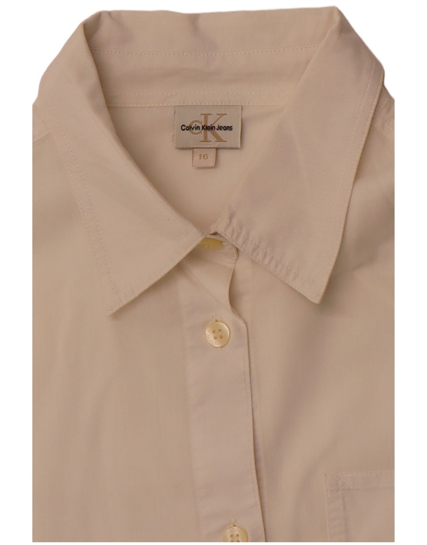 CALVIN KLEIN JEANS Chemise à manches 3/4 pour femme UK 16 Large Off White