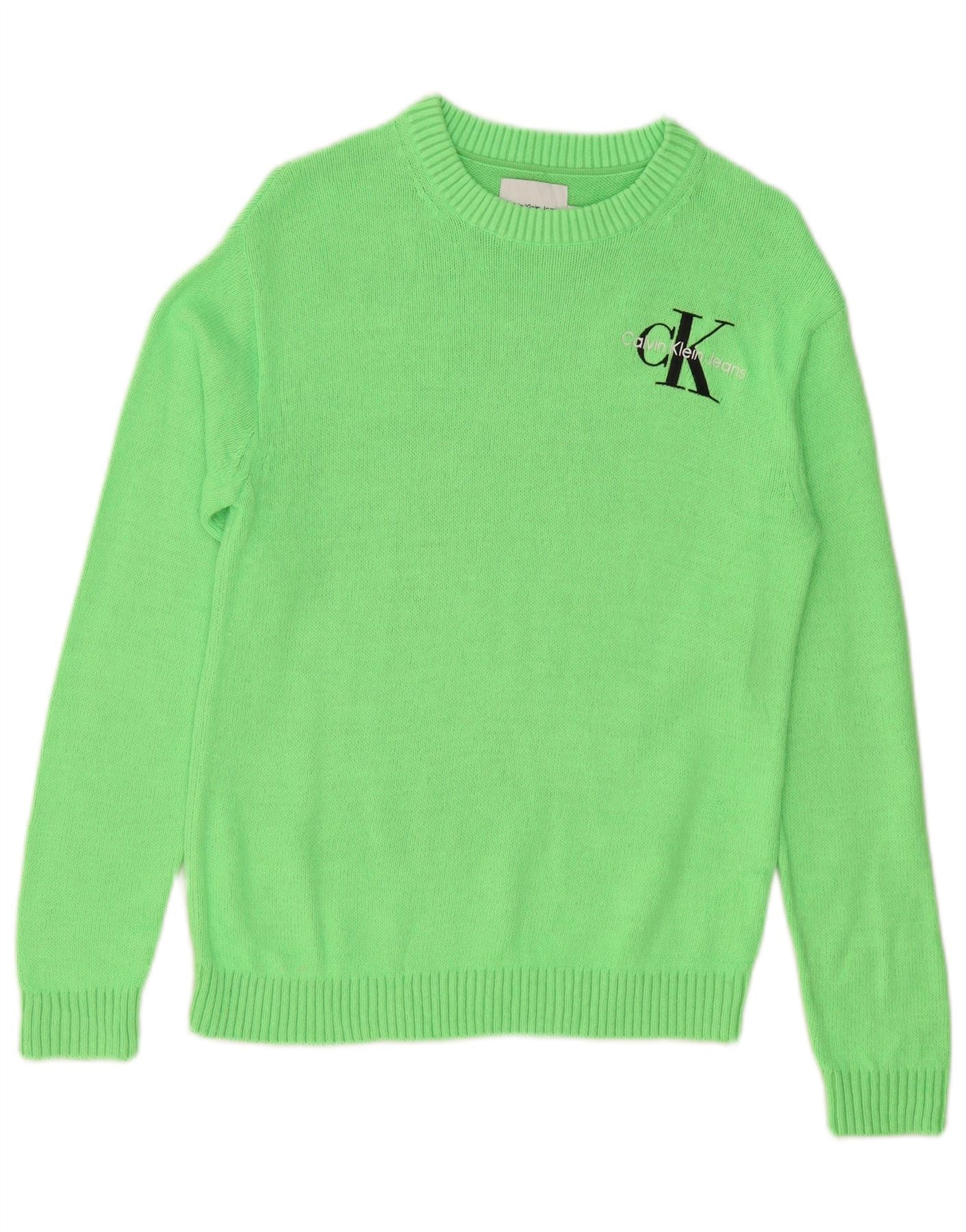 CALVIN KLEIN JEANS Pull ras du cou pour femme UK 14 Vert moyen