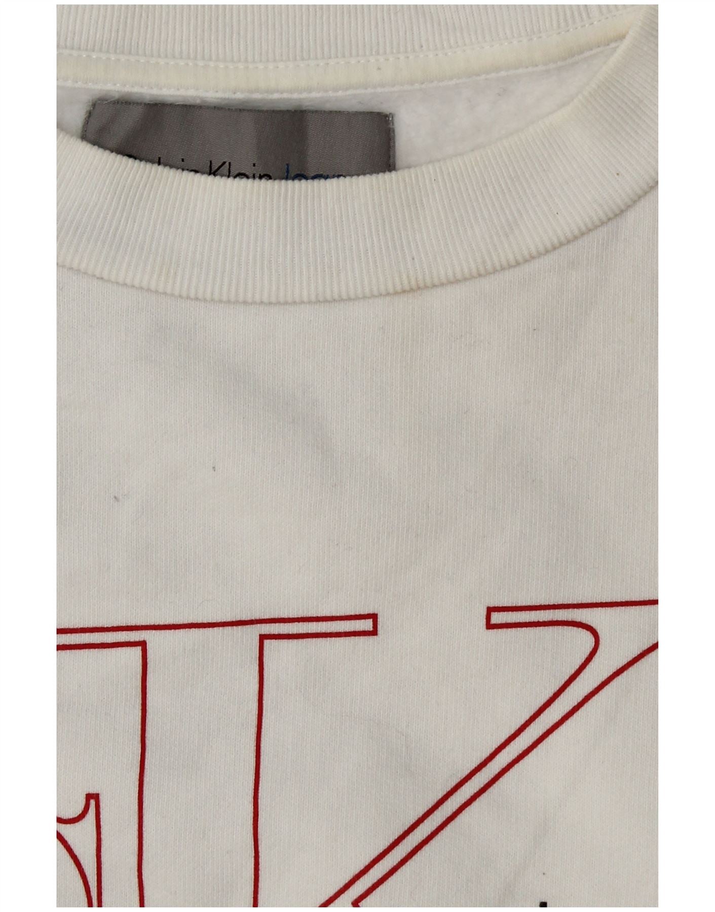 CALVIN KLEIN JEANS Sweat-shirt court graphique pour femme UK 6 XS Blanc