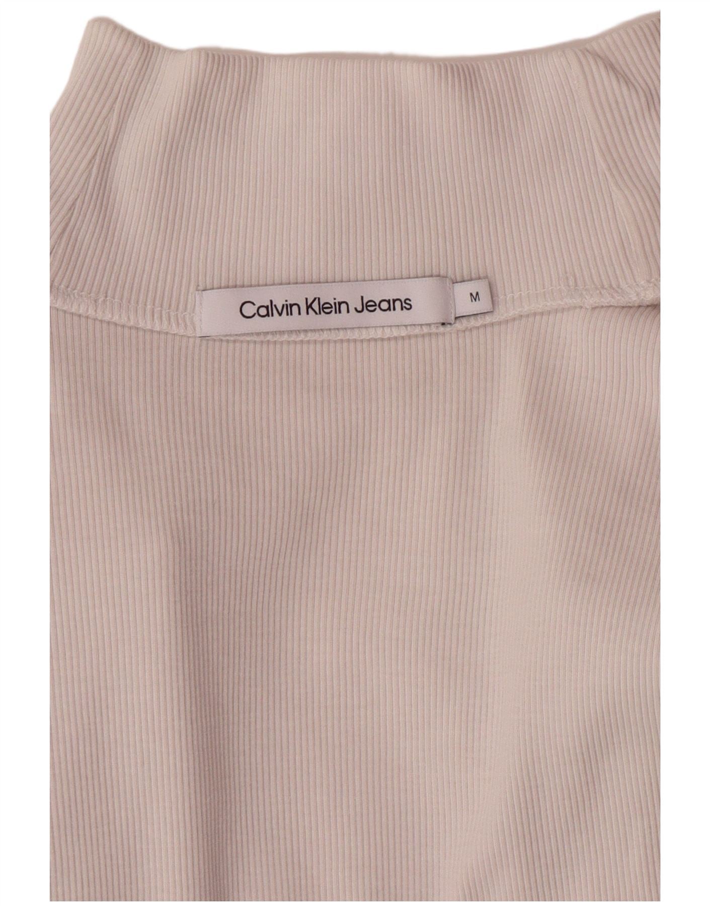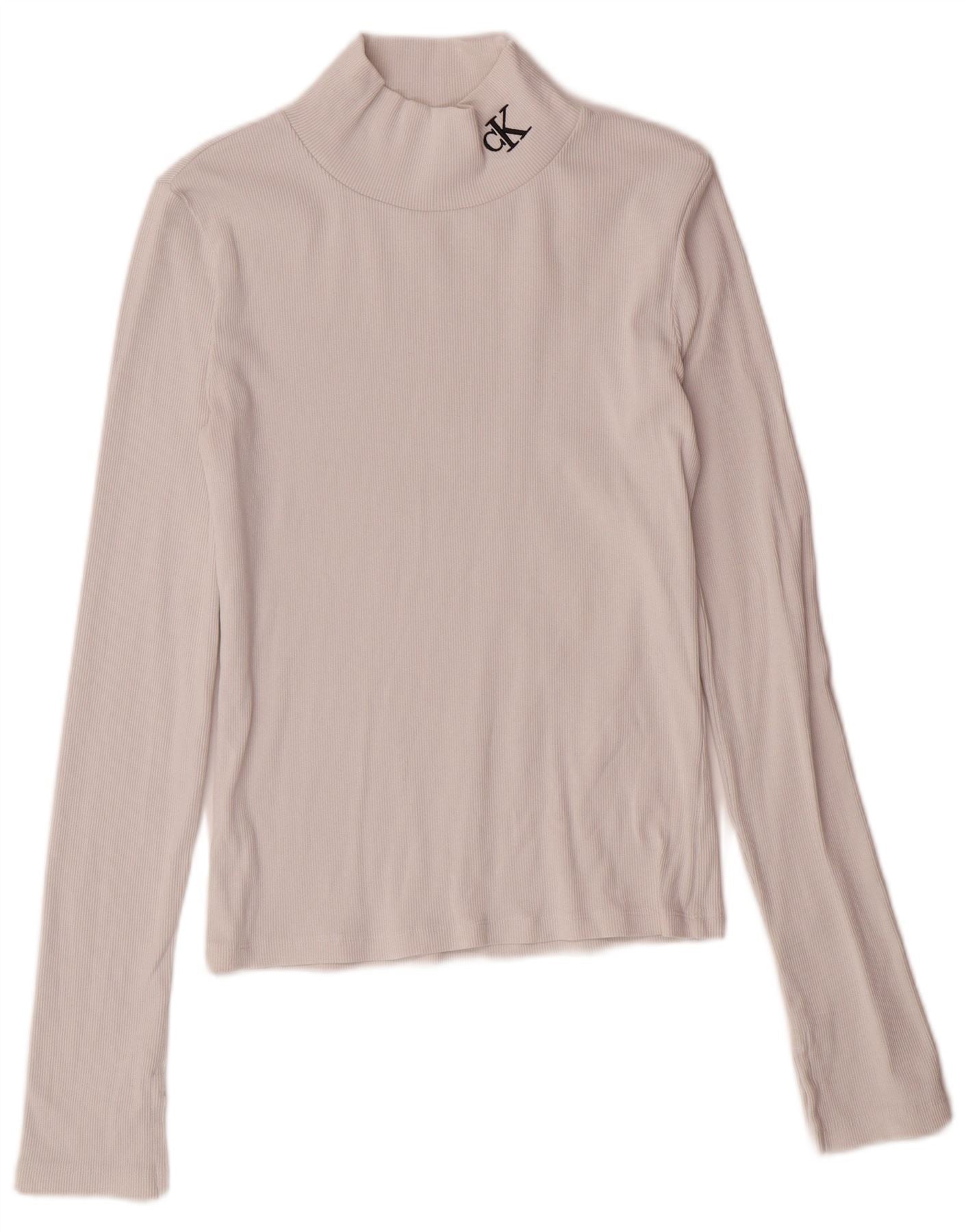 CALVIN KLEIN JEANS Haut court à manches longues pour femme UK 12 Blanc moyen