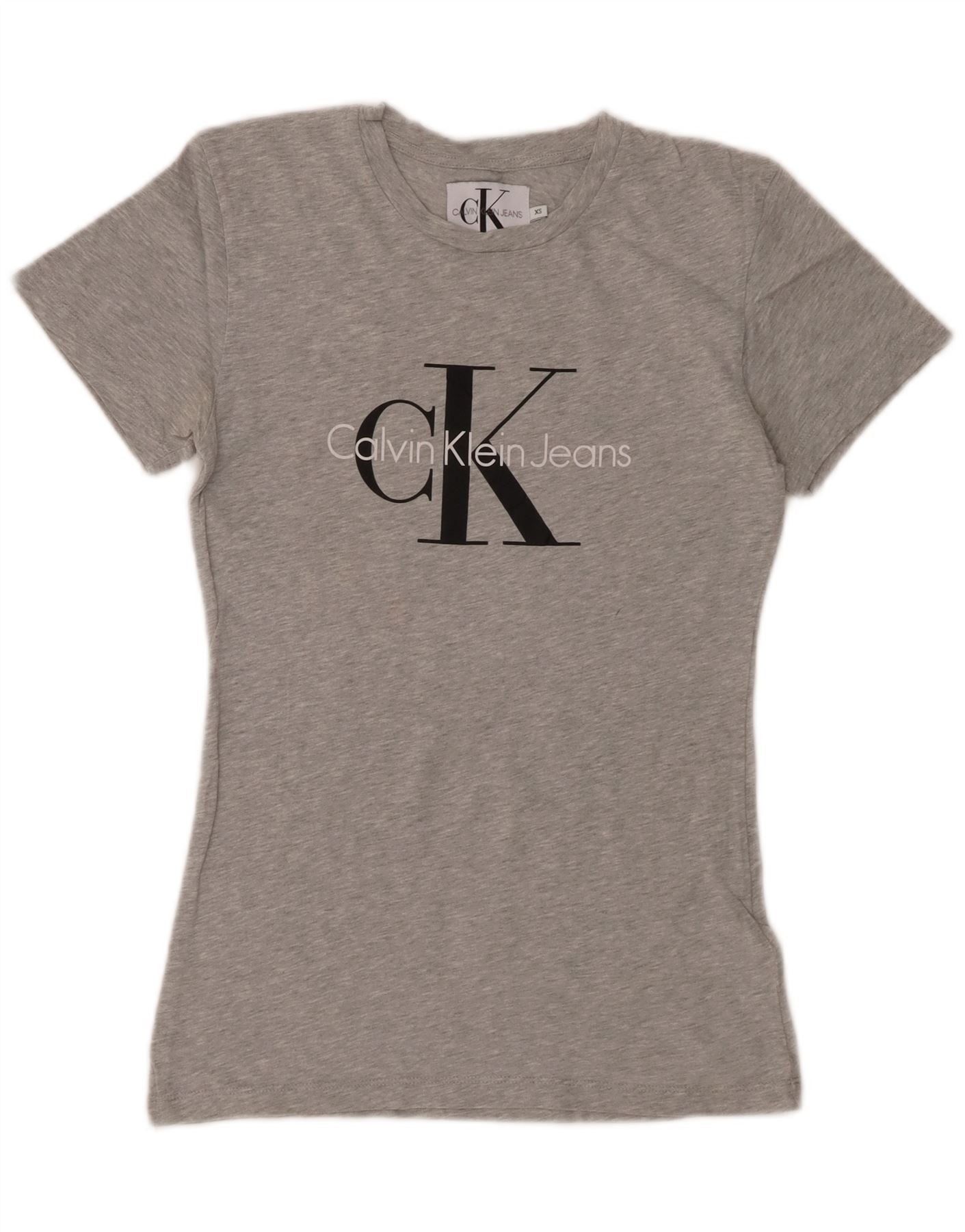 CALVIN KLEIN JEANS T-shirt graphique pour femme UK 6 XS Gris chiné en coton