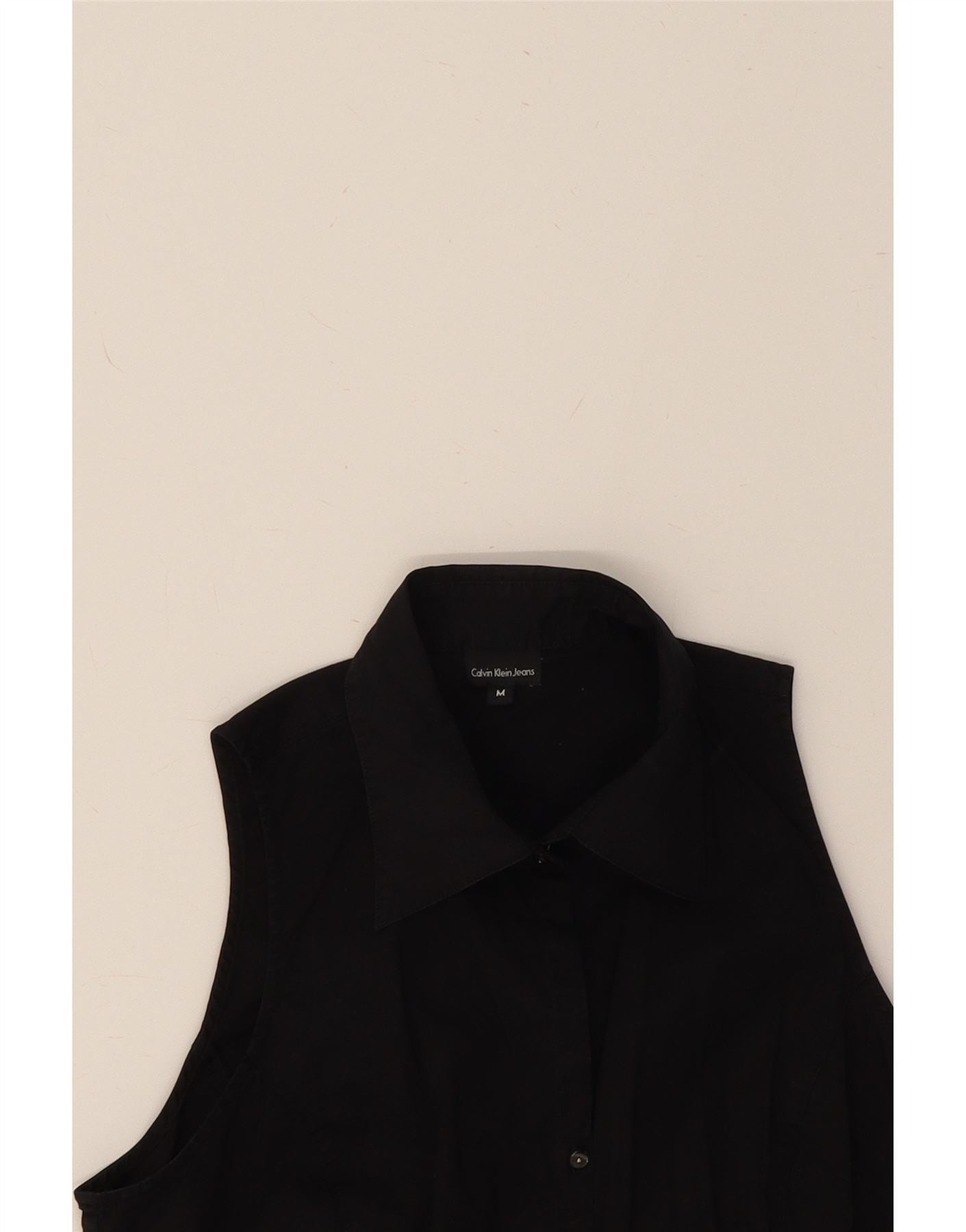 CALVIN KLEIN JEANS Womens Sleeveless Shirt UK 12 Medium Black Cotton