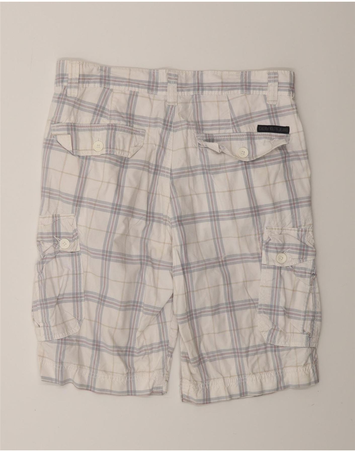 CALVIN KLEIN Short Cargo Homme W32 Coton à Carreaux Blanc Moyen