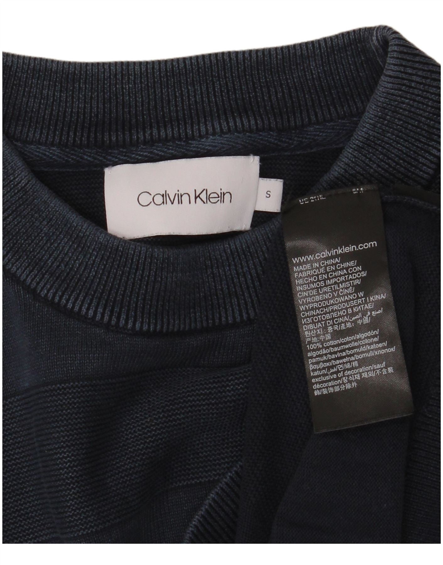 CALVIN KLEIN Pull à col rond pour homme Petit coton rayé bleu marine