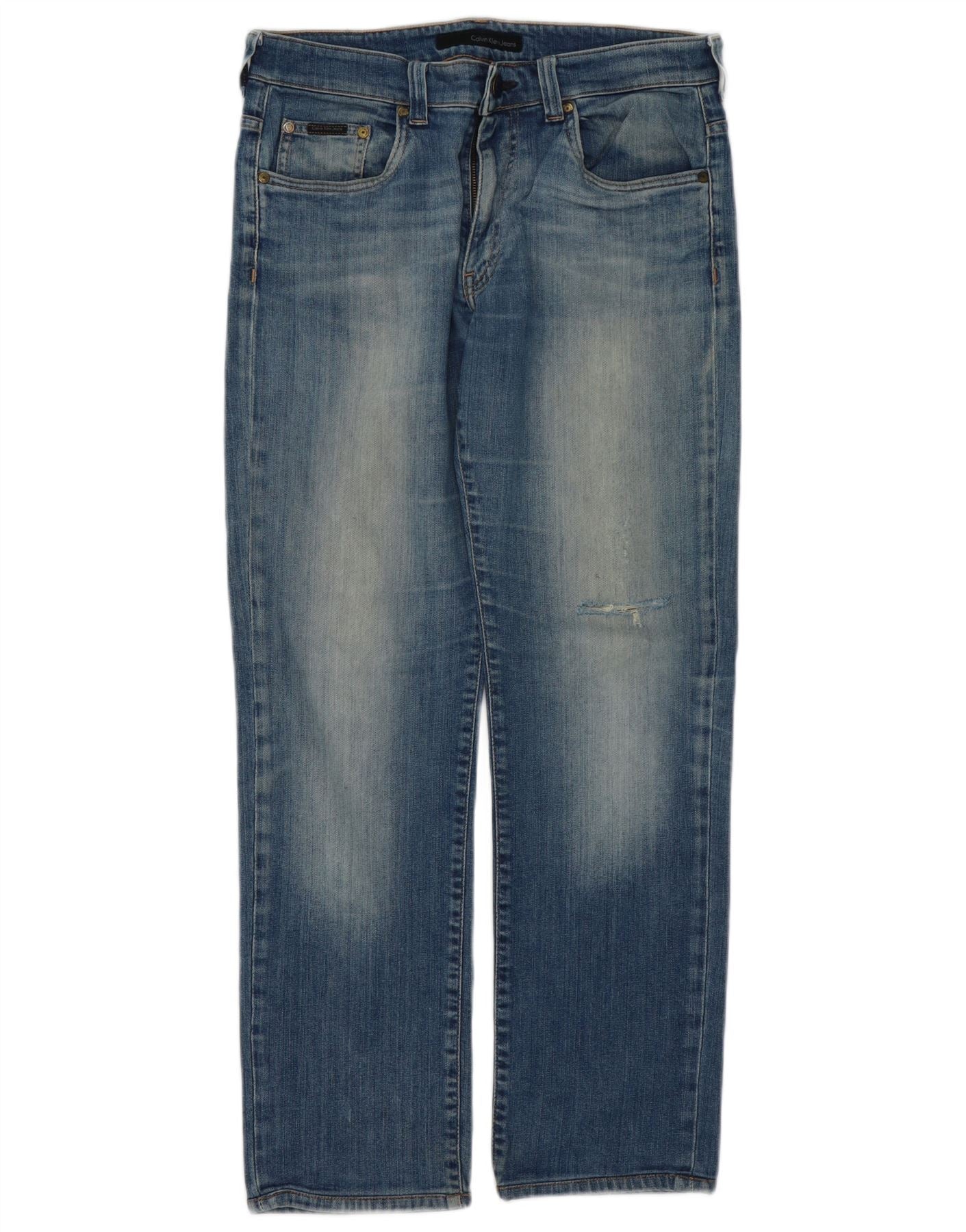 CALVIN KLEIN Jean Slim Effet Déchiré W34 L30 Homme Bleu