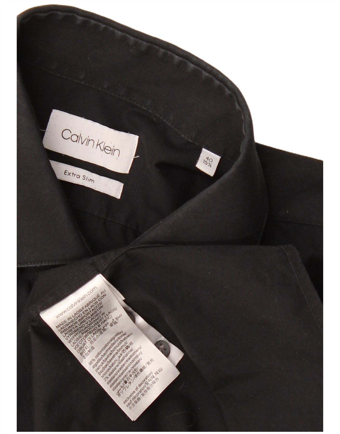 CALVIN KLEIN Chemise Extra Slim Fit Homme Taille 40 15 3/4 Coton Noir Moyen