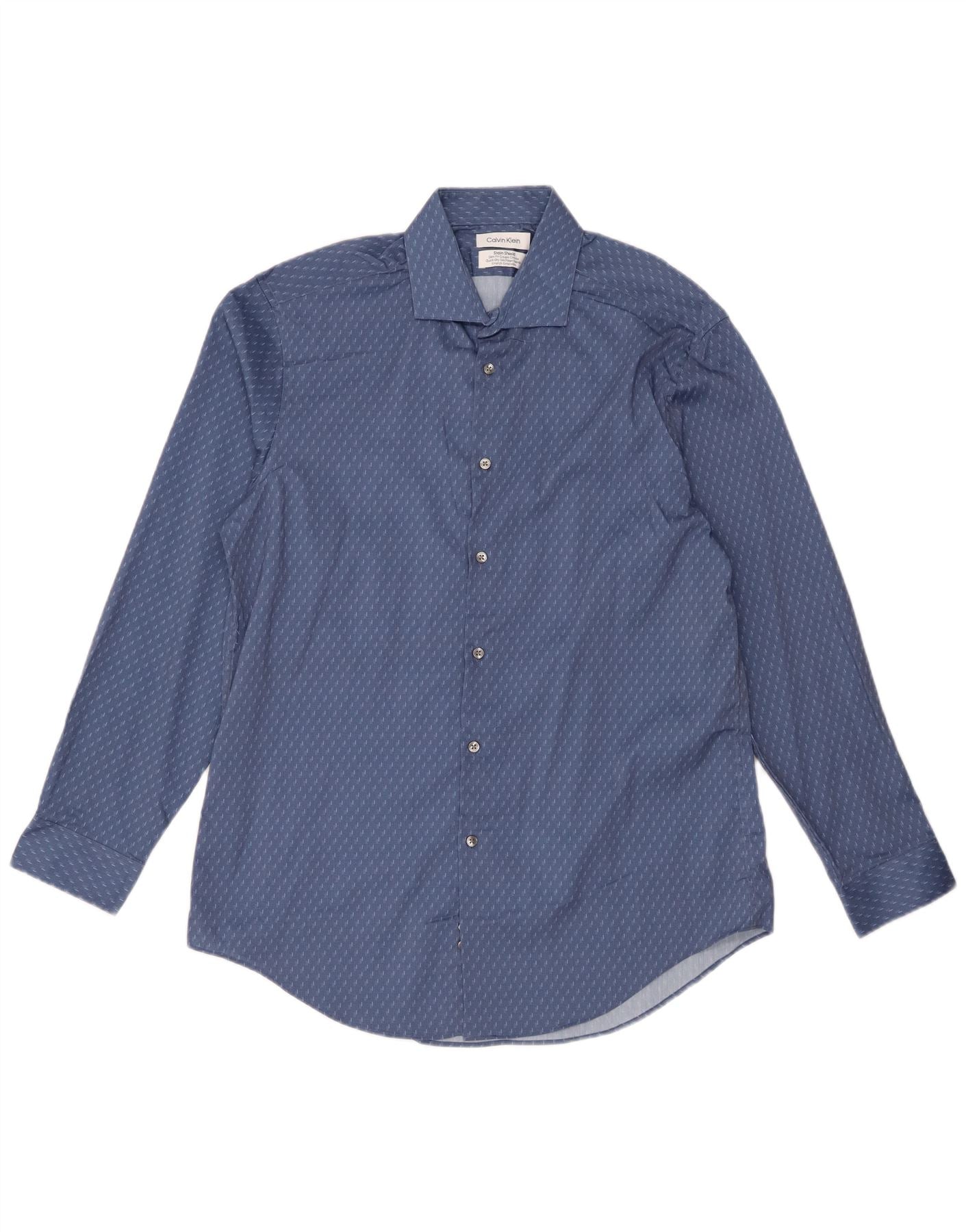Calvin Klein Chemise slim fit pour homme Taille 16 1/2 Grand polyester géométrique bleu
