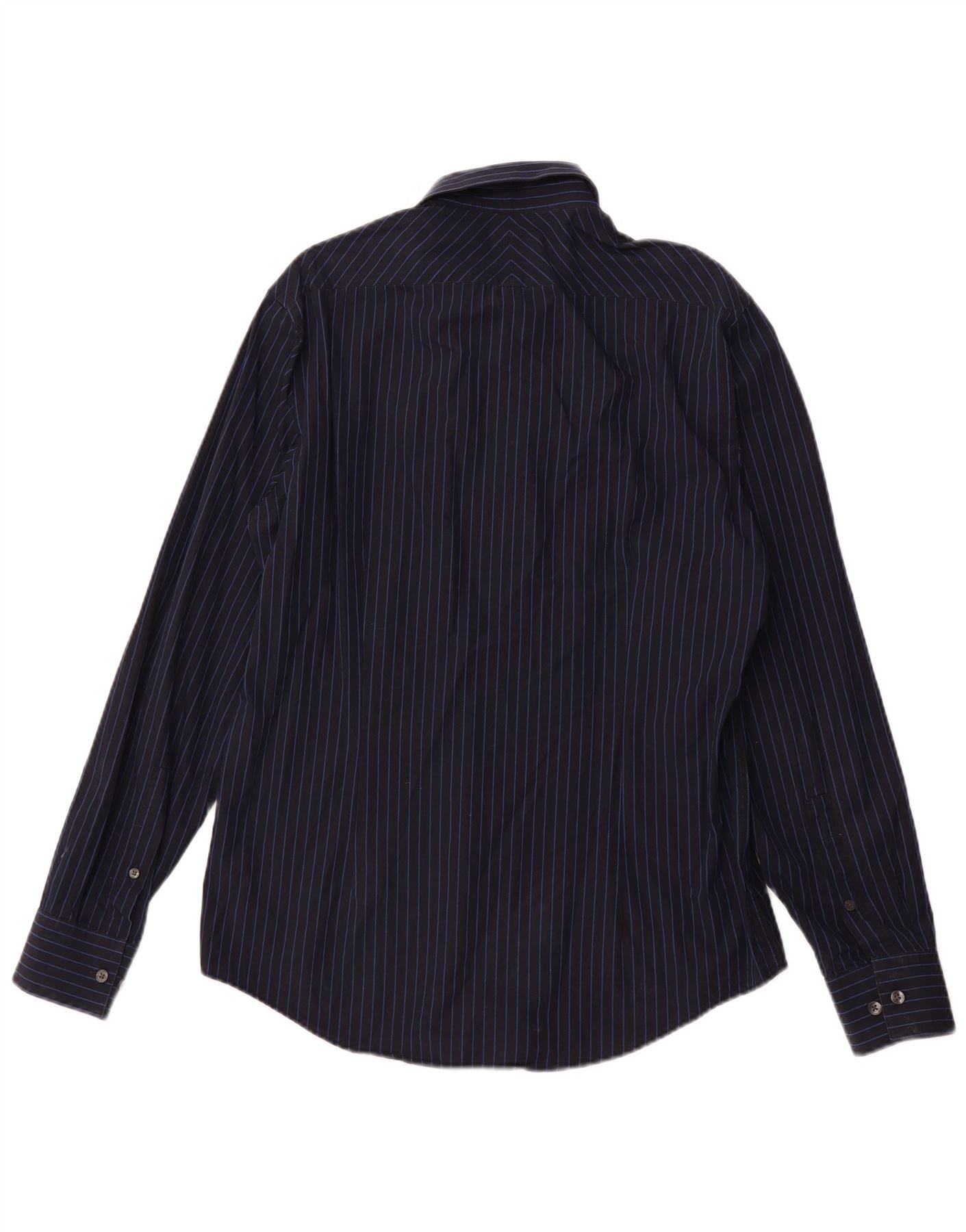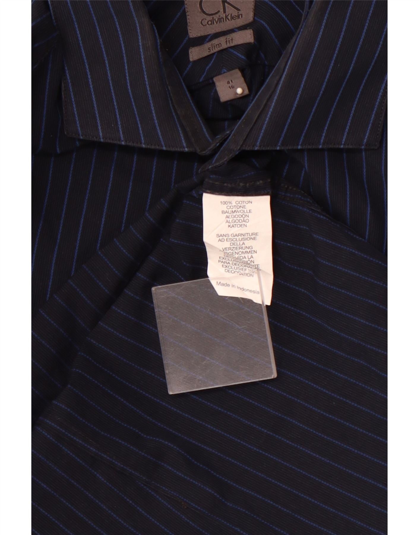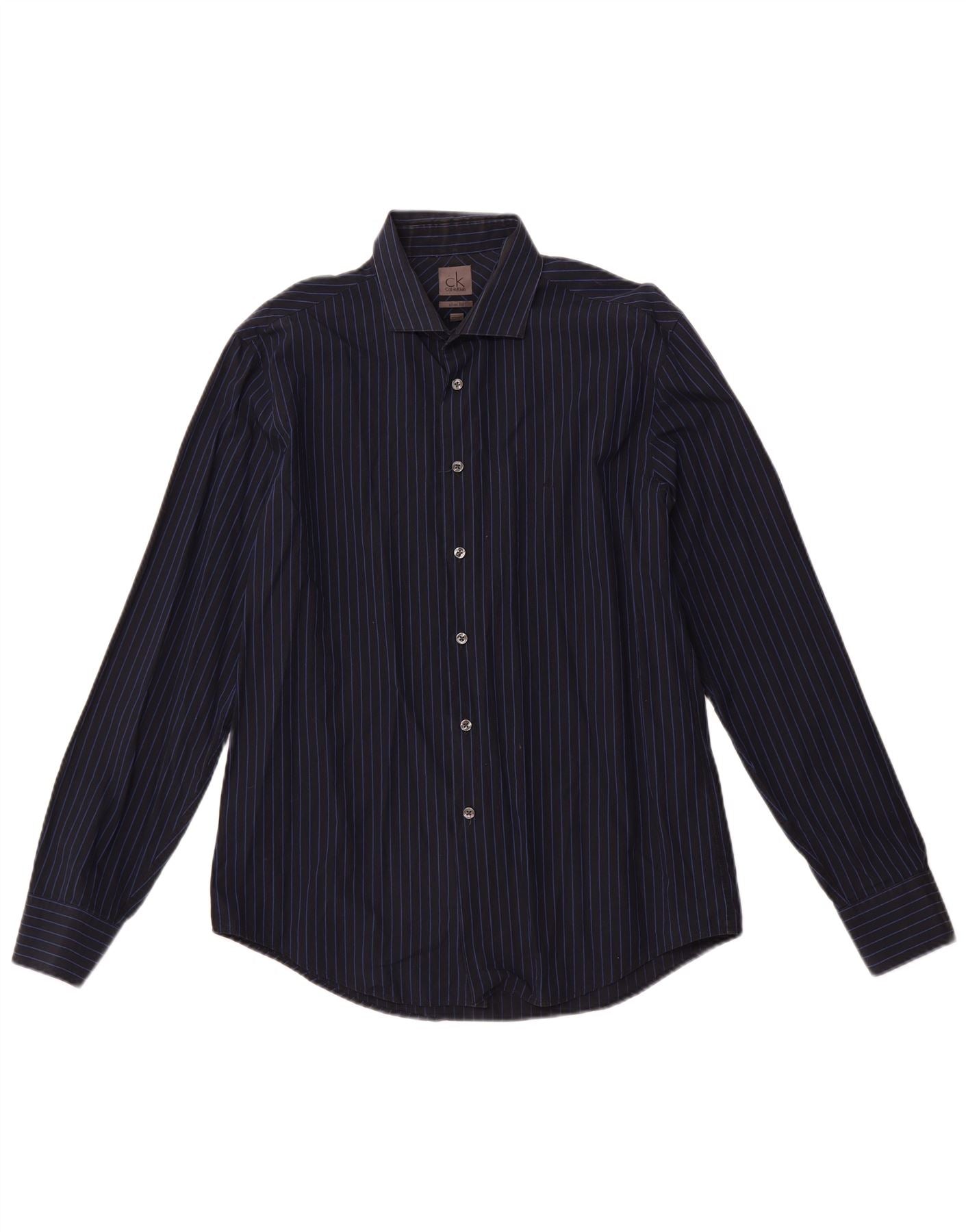 CALVIN KLEIN Chemise Slim Fit Homme Taille 16 41 Grand Coton Rayé Bleu Marine