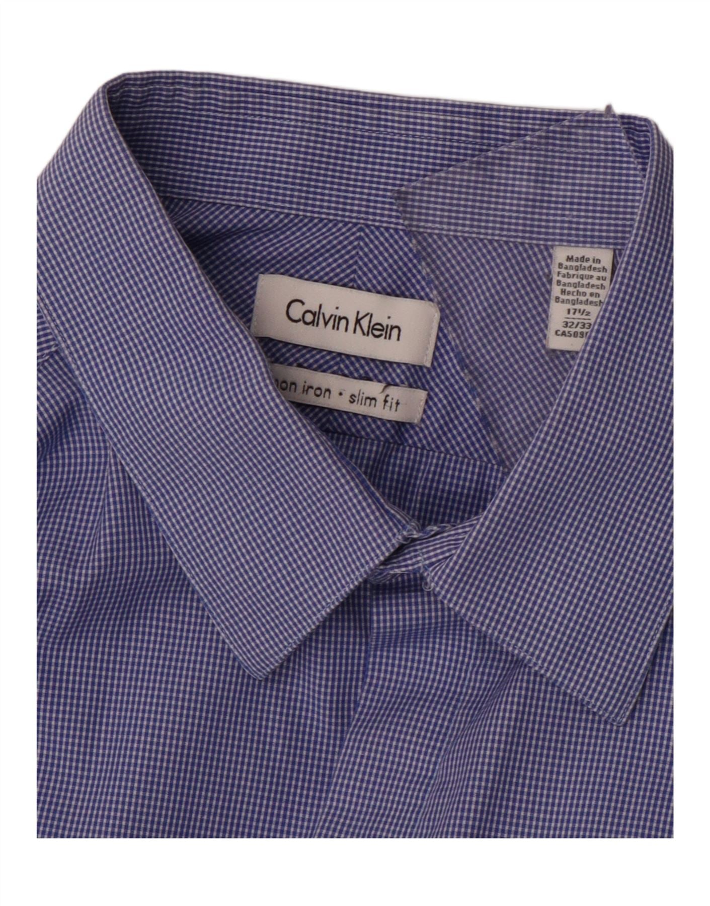 CALVIN KLEIN Chemise Slim Fit Homme Taille 17 1/2 XL Coton à Carreaux Bleu