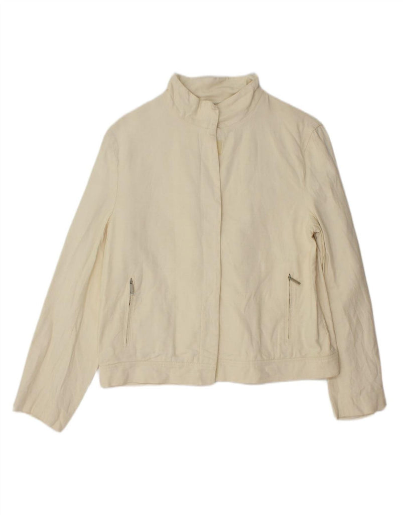CALVIN KLEIN Womens Bomber Jacket US 8 Medium Beige Linen