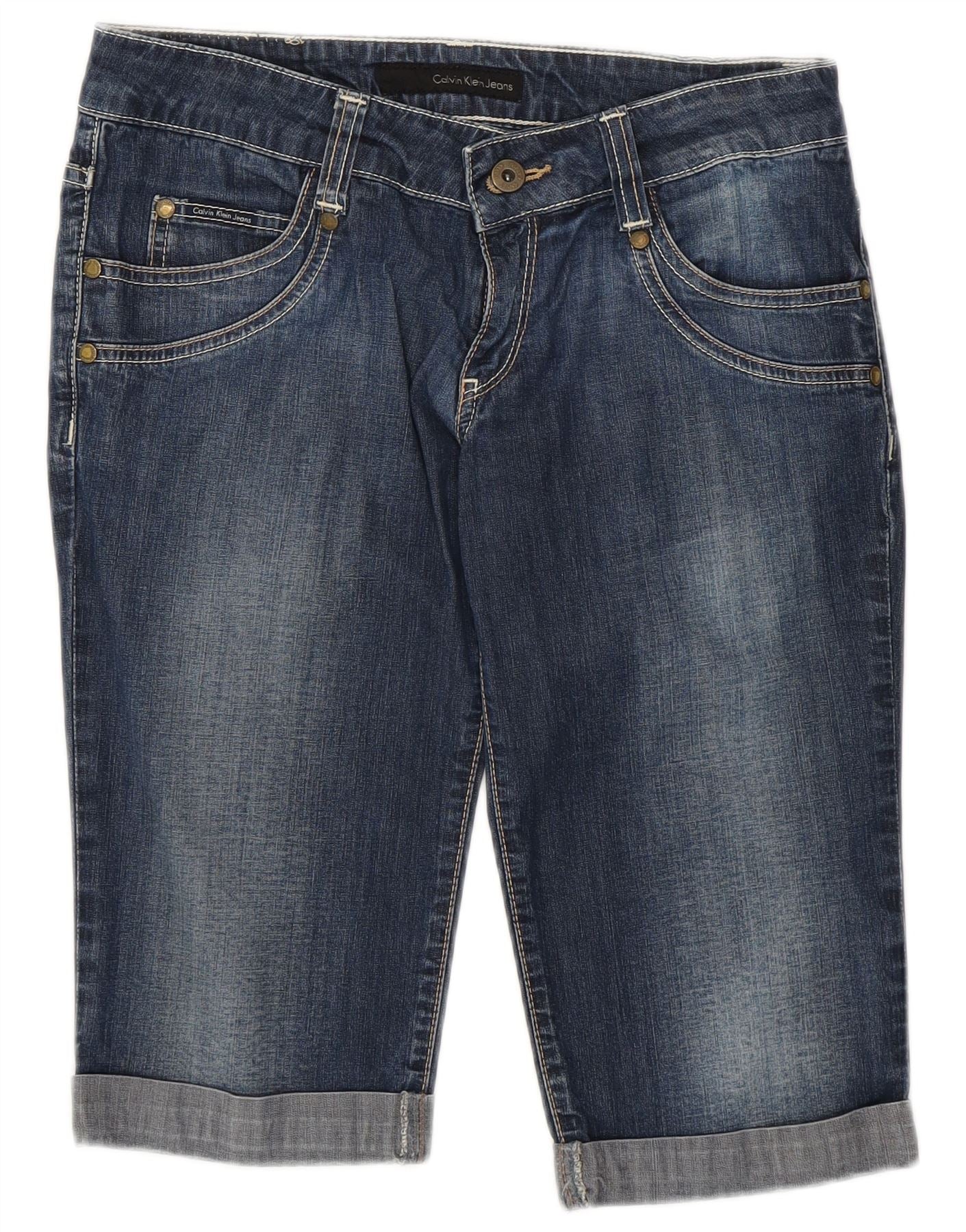 CALVIN KLEIN Femme Short En Jean W28 Bleu Marine Moyen Coton