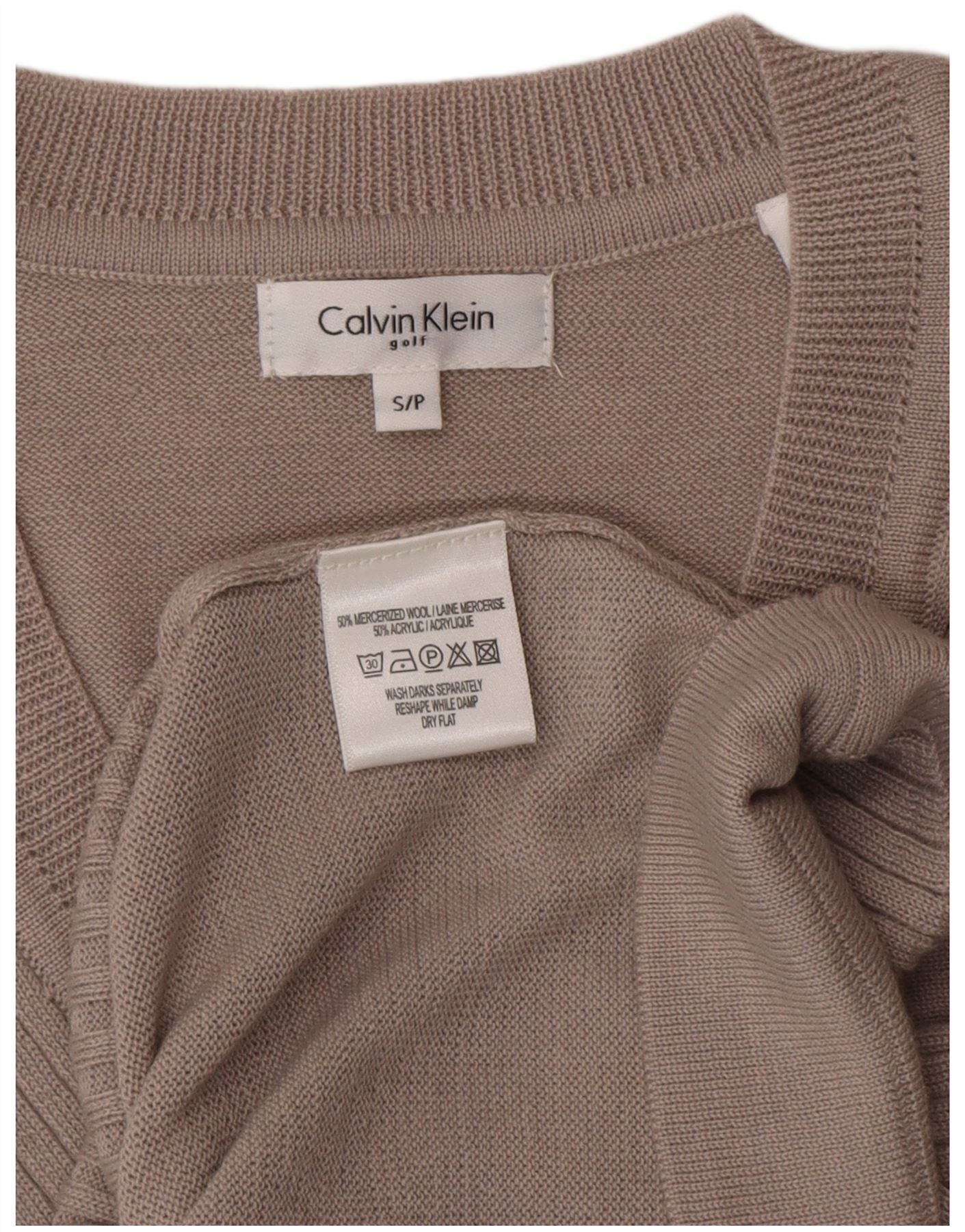 CALVIN KLEIN Pull de golf à col en V pour femme UK 10 Petite laine beige