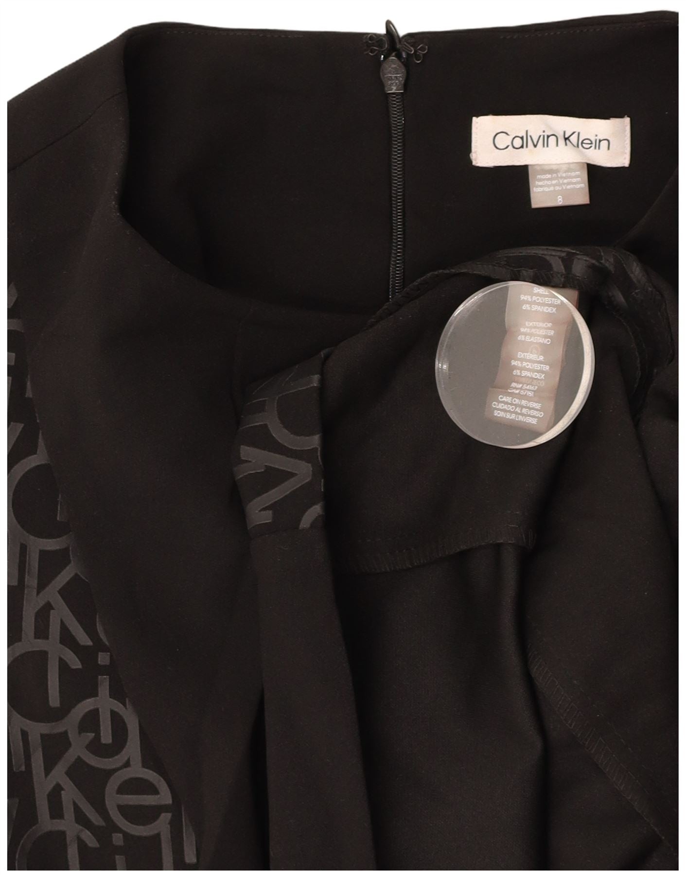 CALVIN KLEIN Robe fourreau graphique sans manches pour femme US 8 Medium Noir