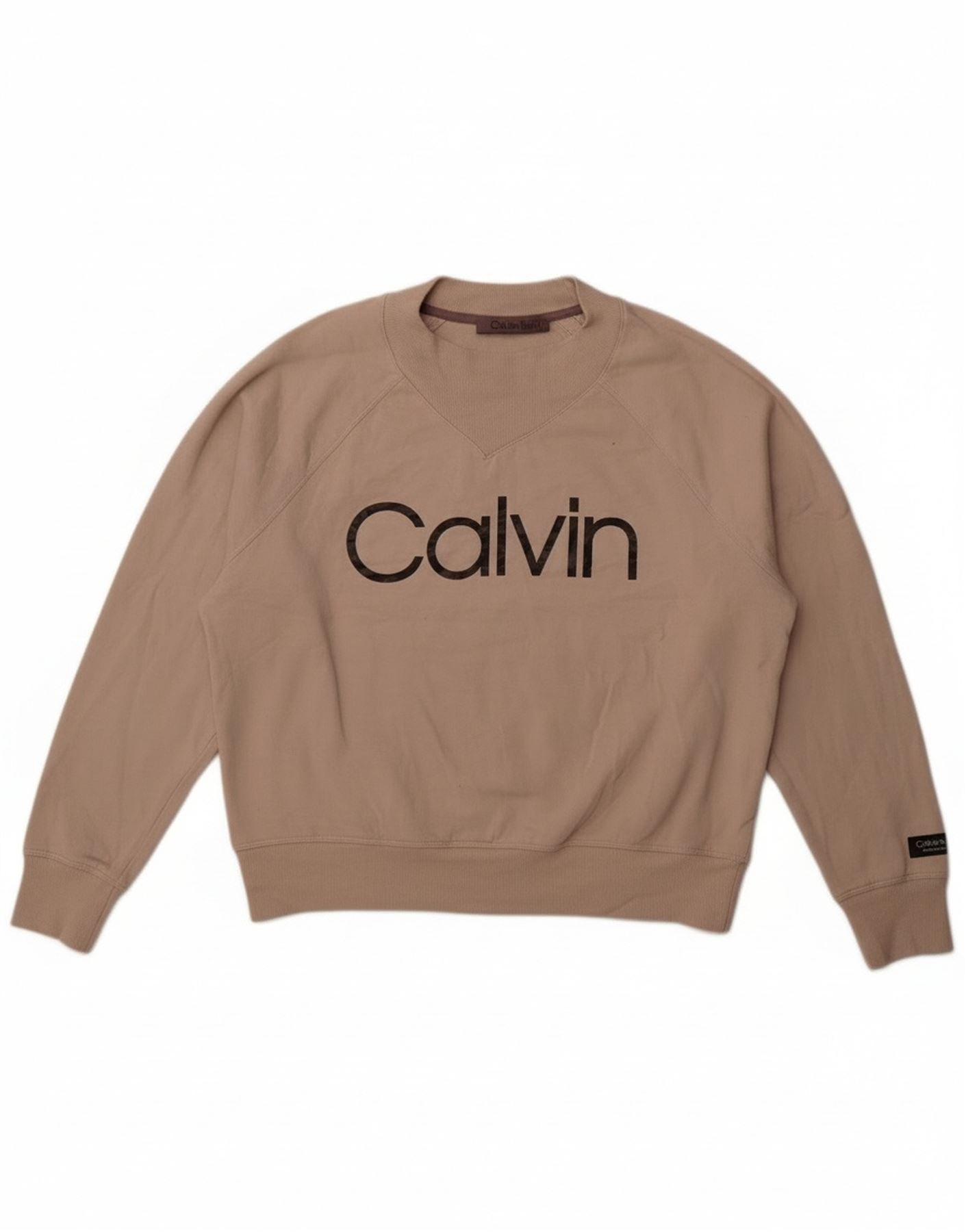 Calvin Klein Sweat-shirt graphique pour femme UK 16 Grand coton beige