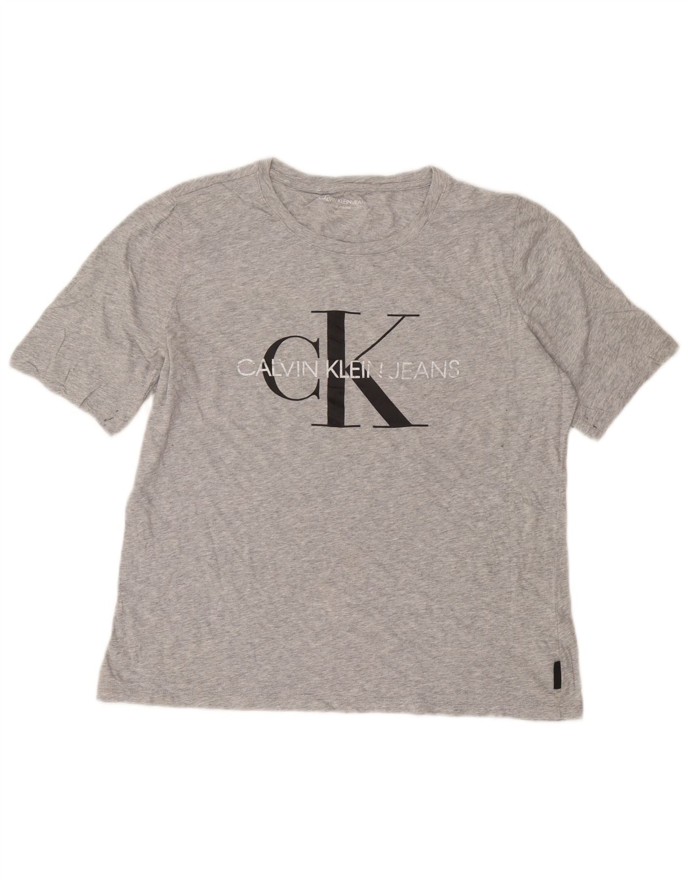 Calvin Klein T-shirt graphique pour femme UK 18 XL Gris Coton