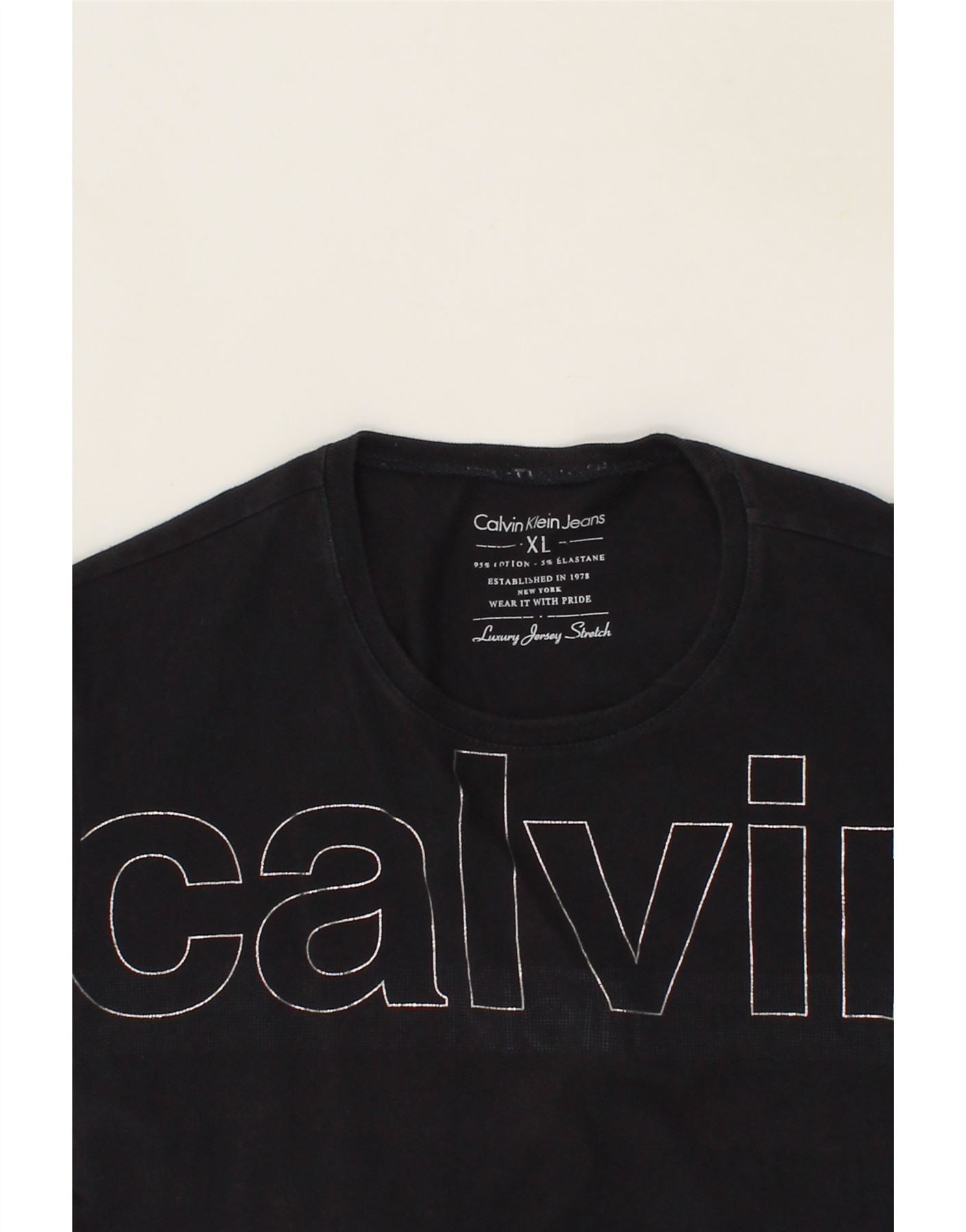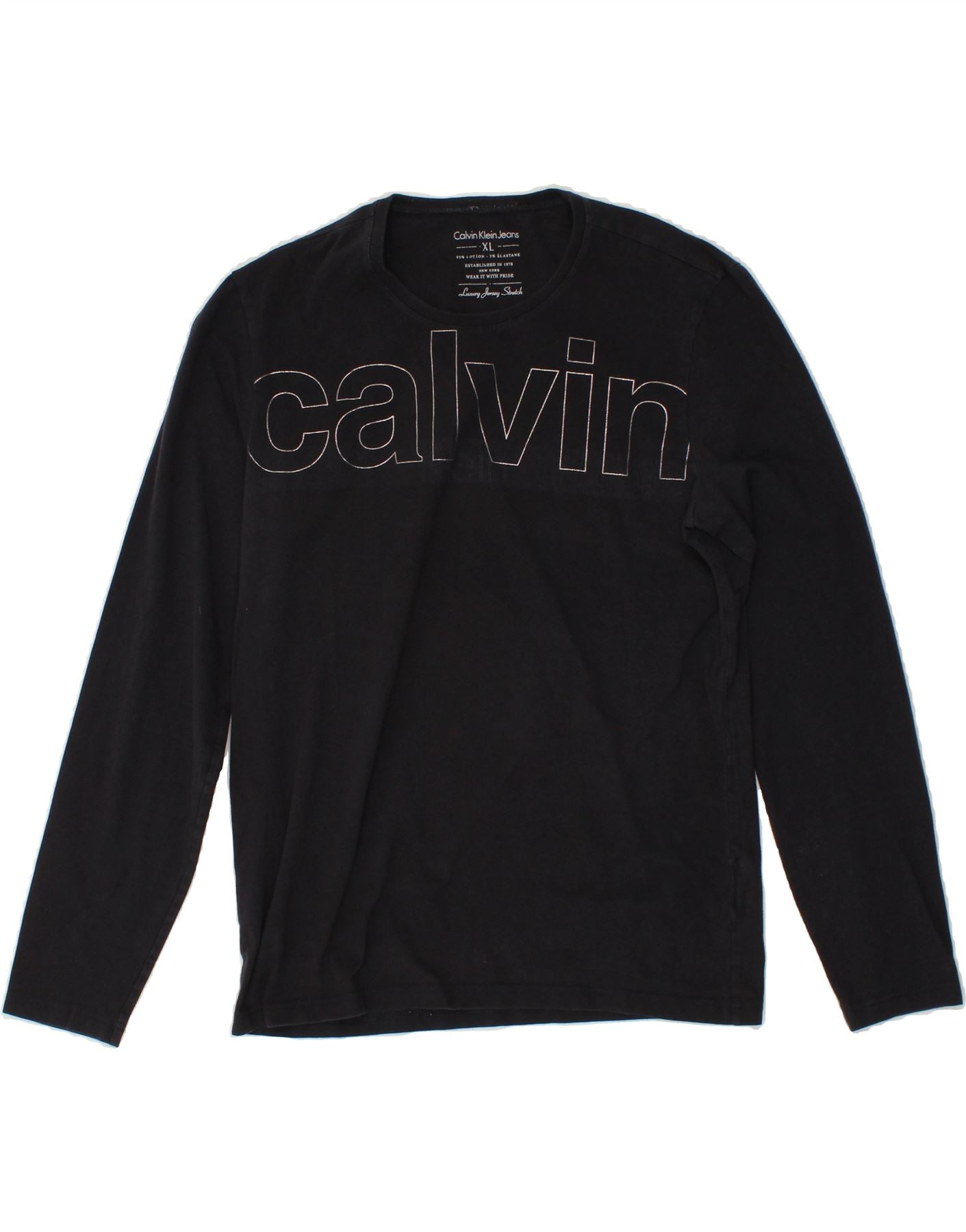 CALVIN KLEIN Womens Graphic Top Long Sleeve UK 18 XL Navy Blue Cotton