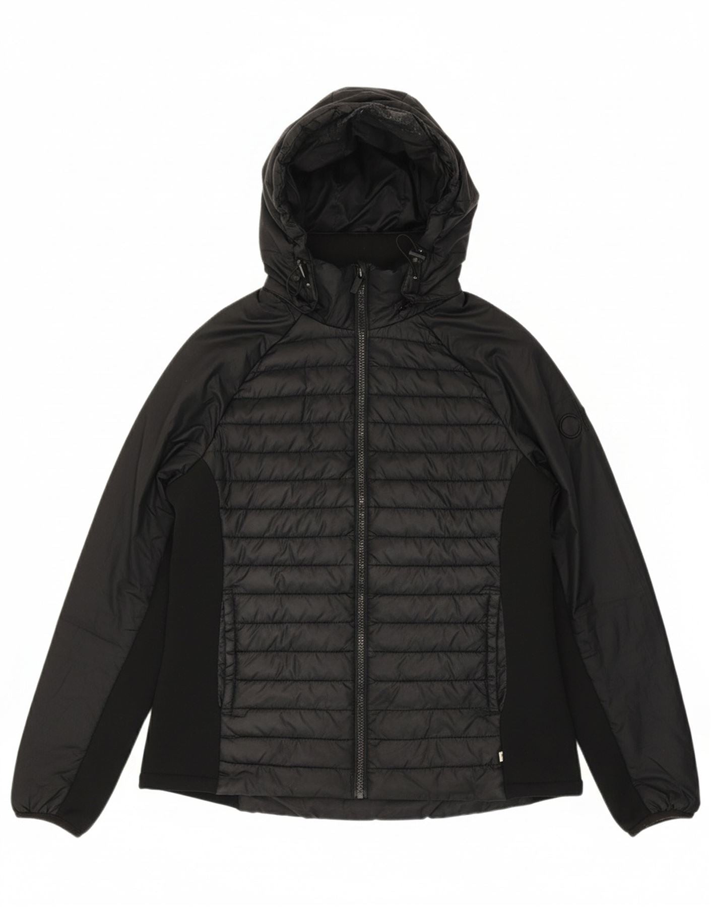 CALVIN KLEIN Womens Hooded Padded Jacket UK 14 Large Black Polyester