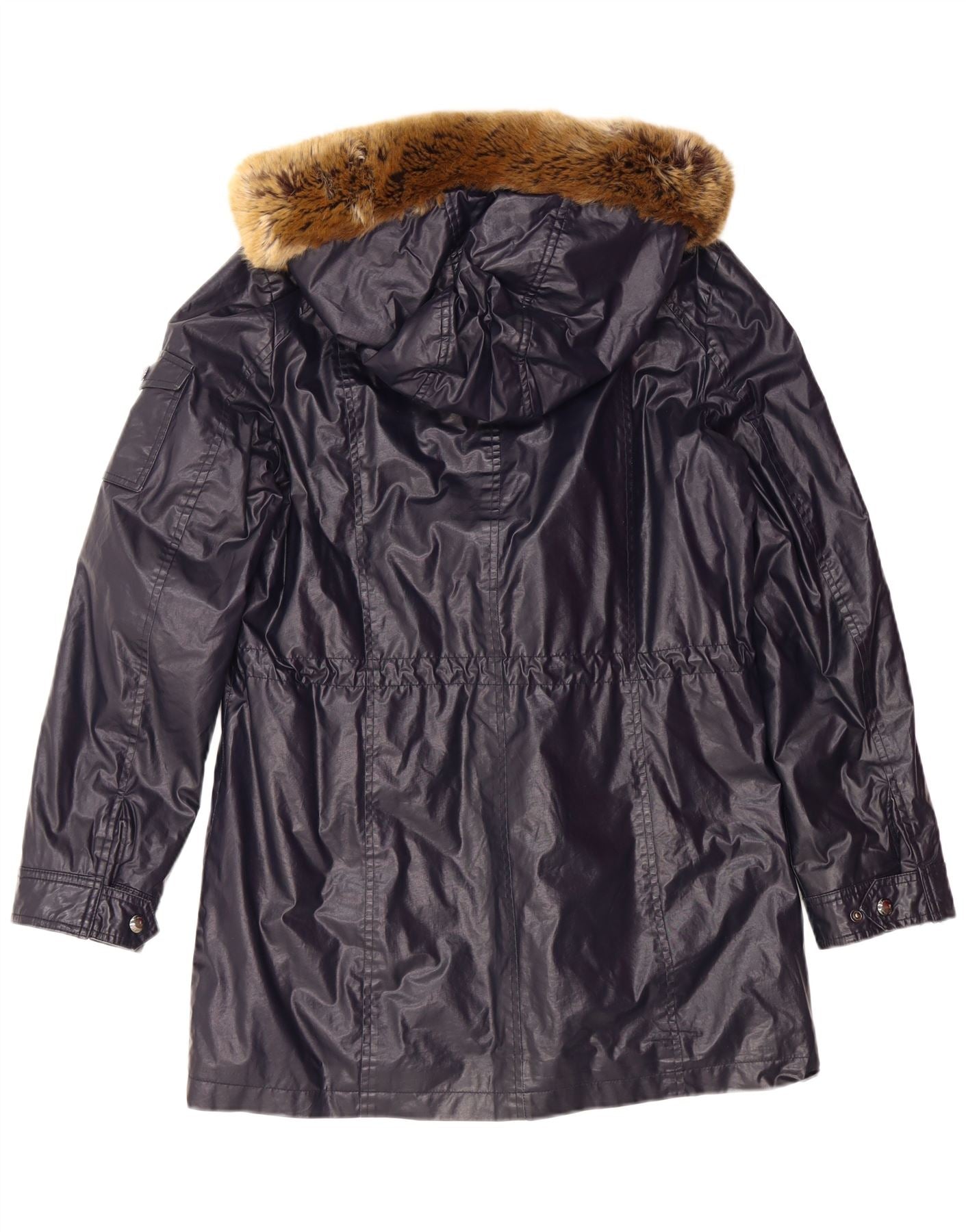 CALVIN KLEIN Veste Parka à Capuche Femme UK 16 Large Bleu Marine Polyester