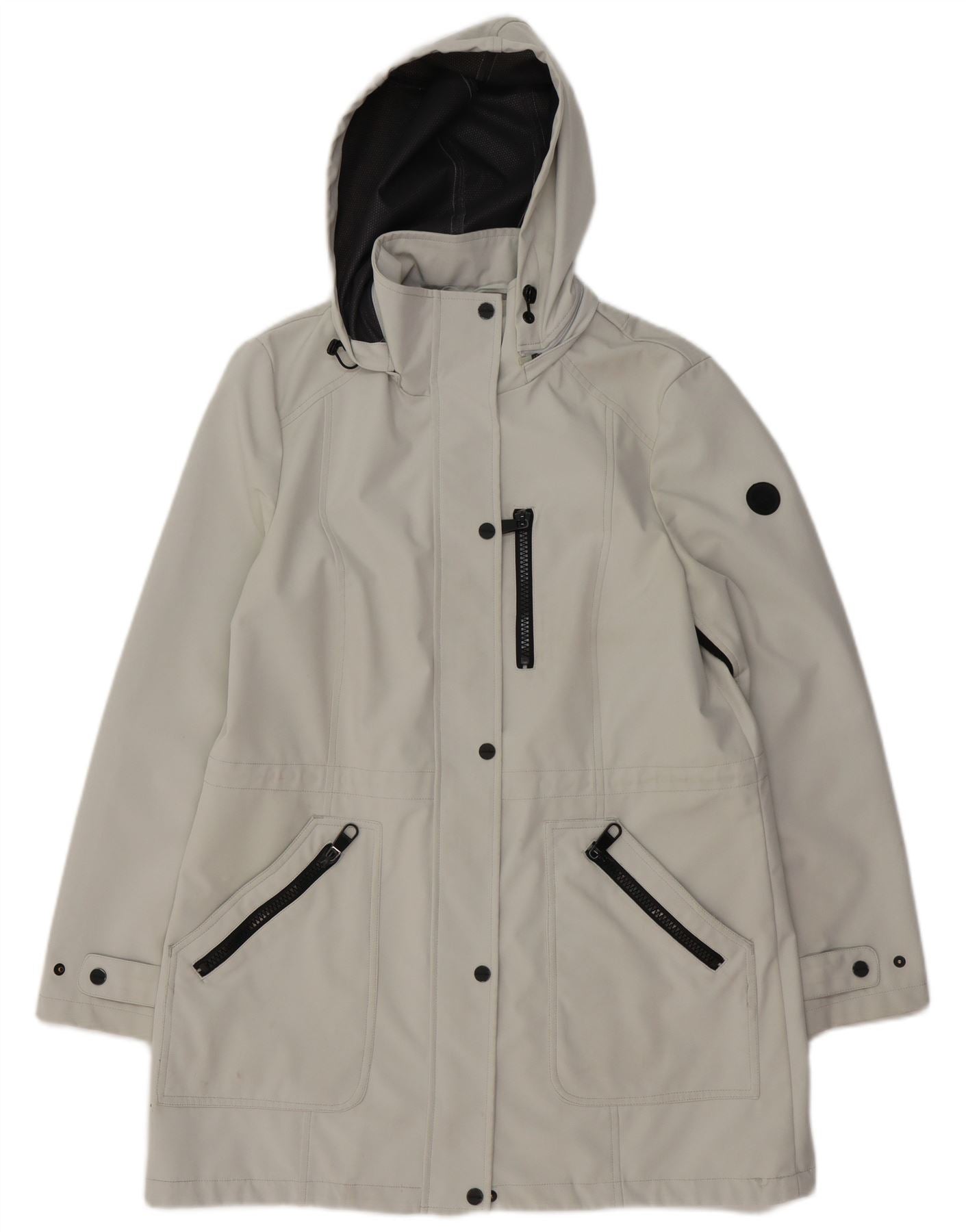 CALVIN KLEIN Manteau coupe-vent à capuche pour femme UK 16 Large Gris Polyester
