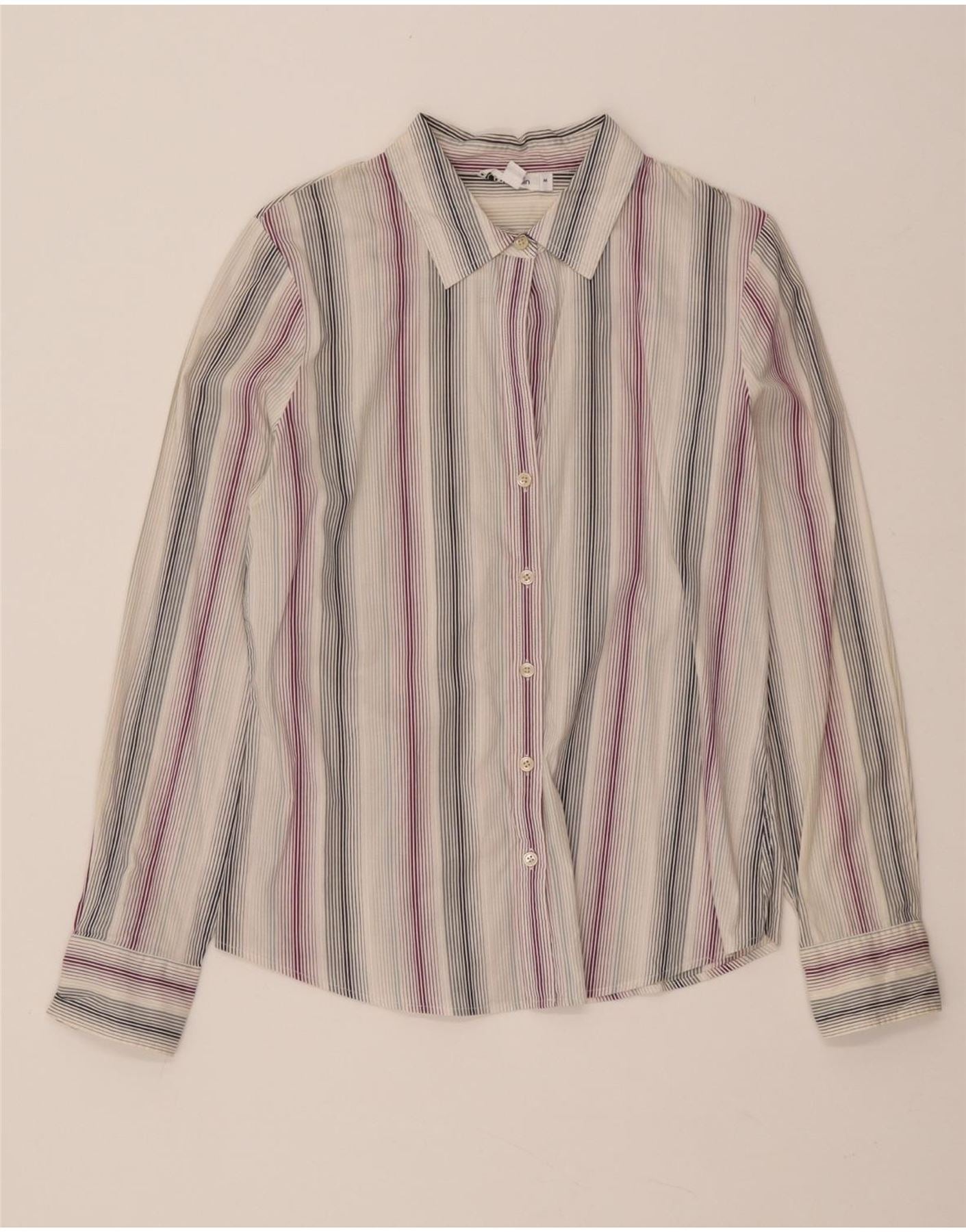 Calvin Klein Chemise Femme UK 14 Medium Multicolore Rayé Coton