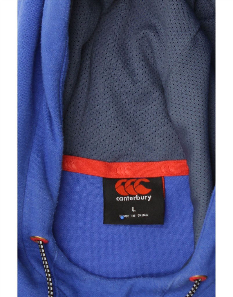 - AI Description: This Canterbury mens hoodie jumper is crafted from a comfortable blue knit fabric, offering a soft feel. It features a classic hooded design and long sleeves. The pullover style ensures ease of wear. A regular fit provides comfortable movement. It includes practical pockets and a prominent logo accent, ideal for sports enthusiasts. This garment is perfect for casual wear or supporting rugby.