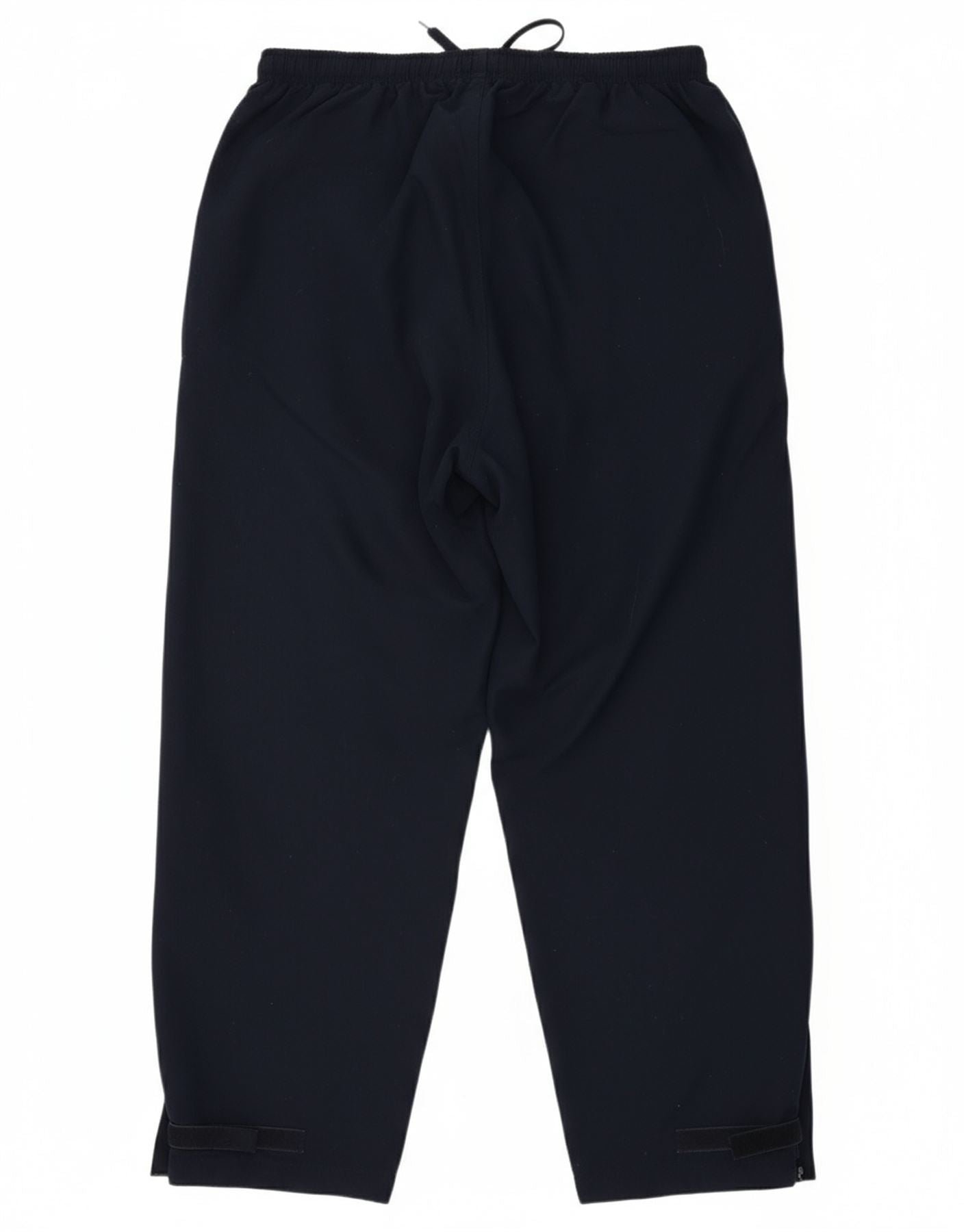 - AI Description: This Canterbury Of New Zealand mens tracksuit trousers joggers are crafted from durable navy blue woven polyester. They feature a comfortable regular fit with an elasticated and adjustable waist, ensuring a secure pull-on closure. The jogger style offers excellent ease of movement. Practical pockets are included for convenience. A subtle brand logo provides a signature accent. These trousers are ideal for sports, especially rugby, or relaxed casual wear.