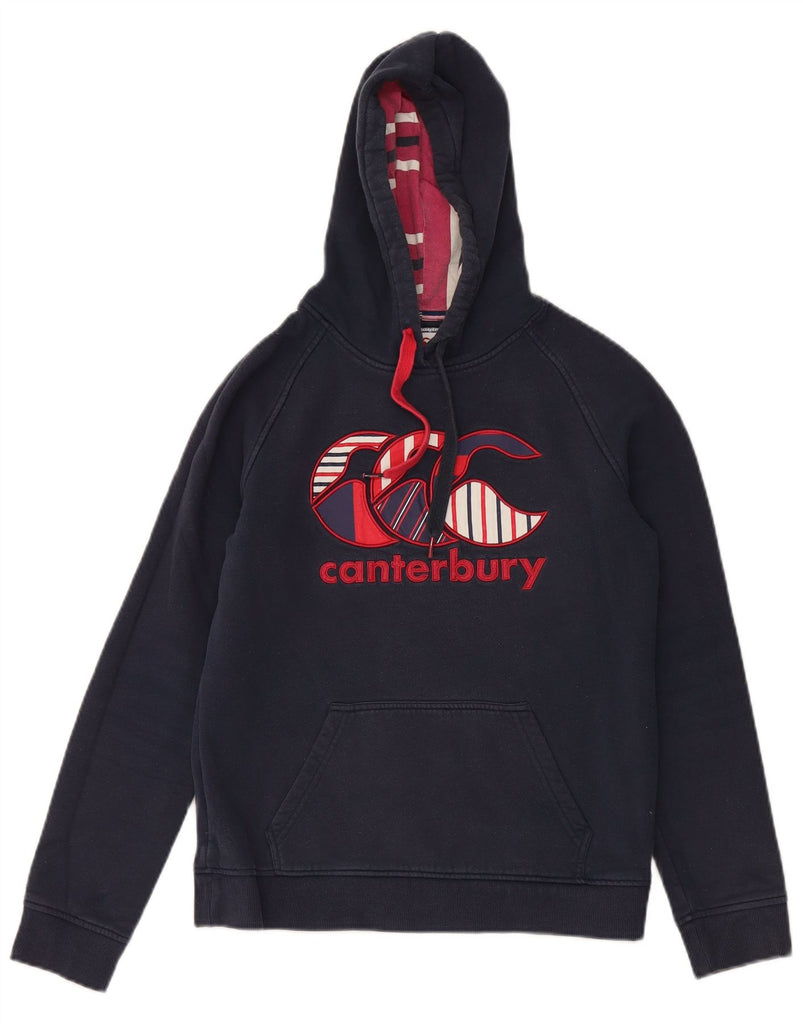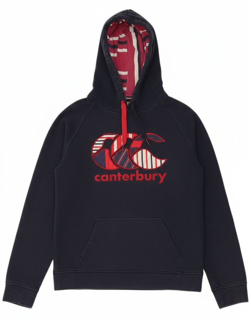 CANTERBURY Womens Graphic Hoodie Jumper UK 10 Small Navy Blue