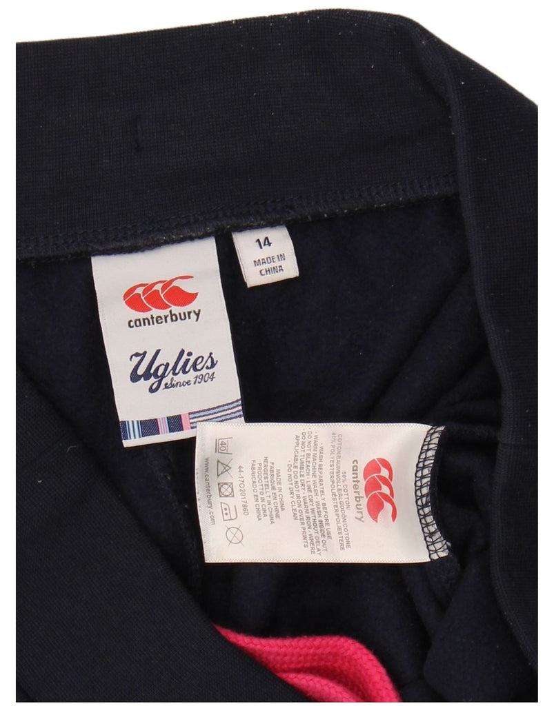 CANTERBURY Womens Graphic Tracksuit Trousers US 14 Large Navy Blue Cotton