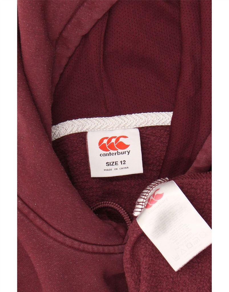CANTERBURY Womens Hoodie Jumper UK 12 Medium Maroon Geometric Cotton