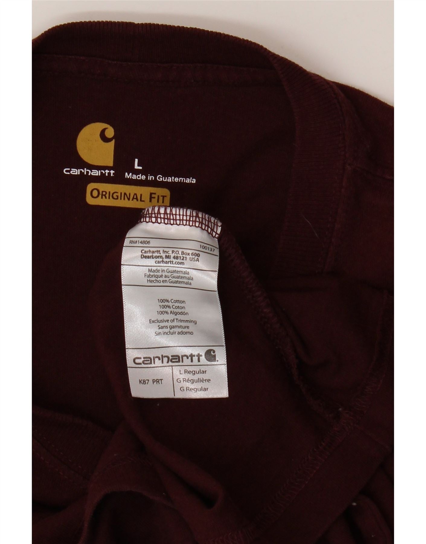 CARHARTT T-shirt coupe originale pour hommes, grand, en coton bordeaux