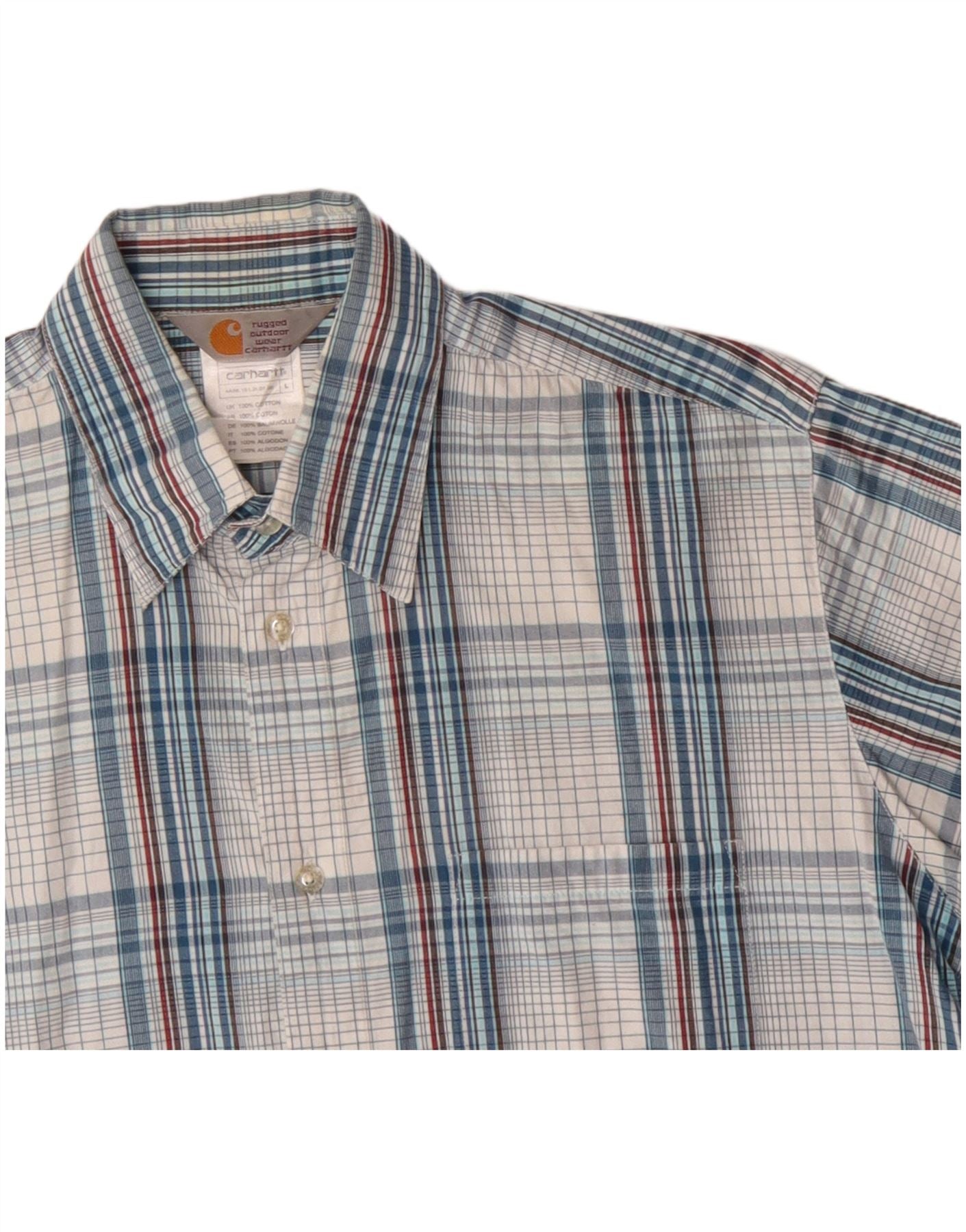 Home > Vêtements Carhartt vintage > Pour des hommes > CARHARTT Chemise à manches courtes pour homme en coton à carreaux bleus