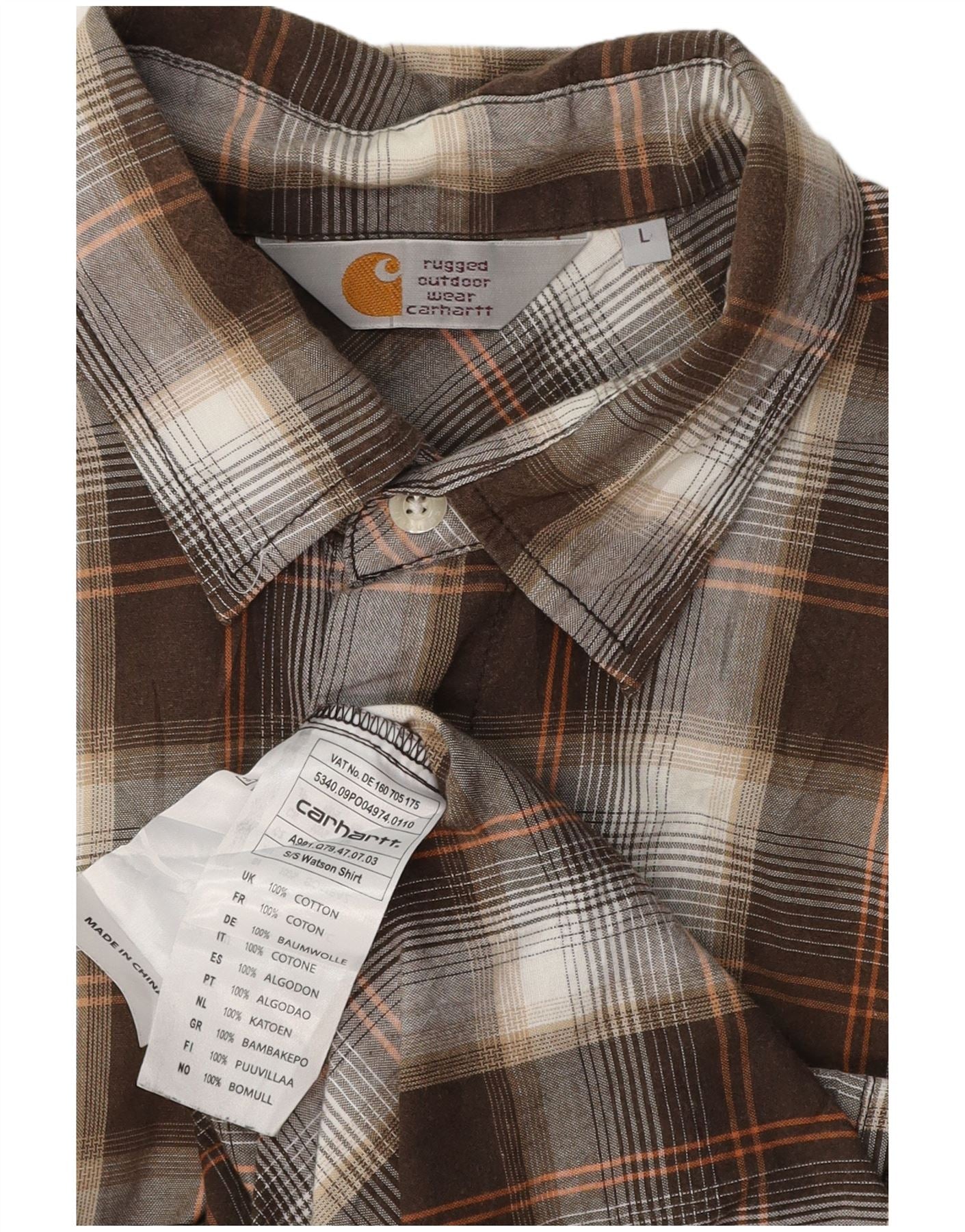 Home > Vêtements Carhartt vintage > Pour des hommes > CARHARTT Chemise à manches courtes pour homme en coton à carreaux marron