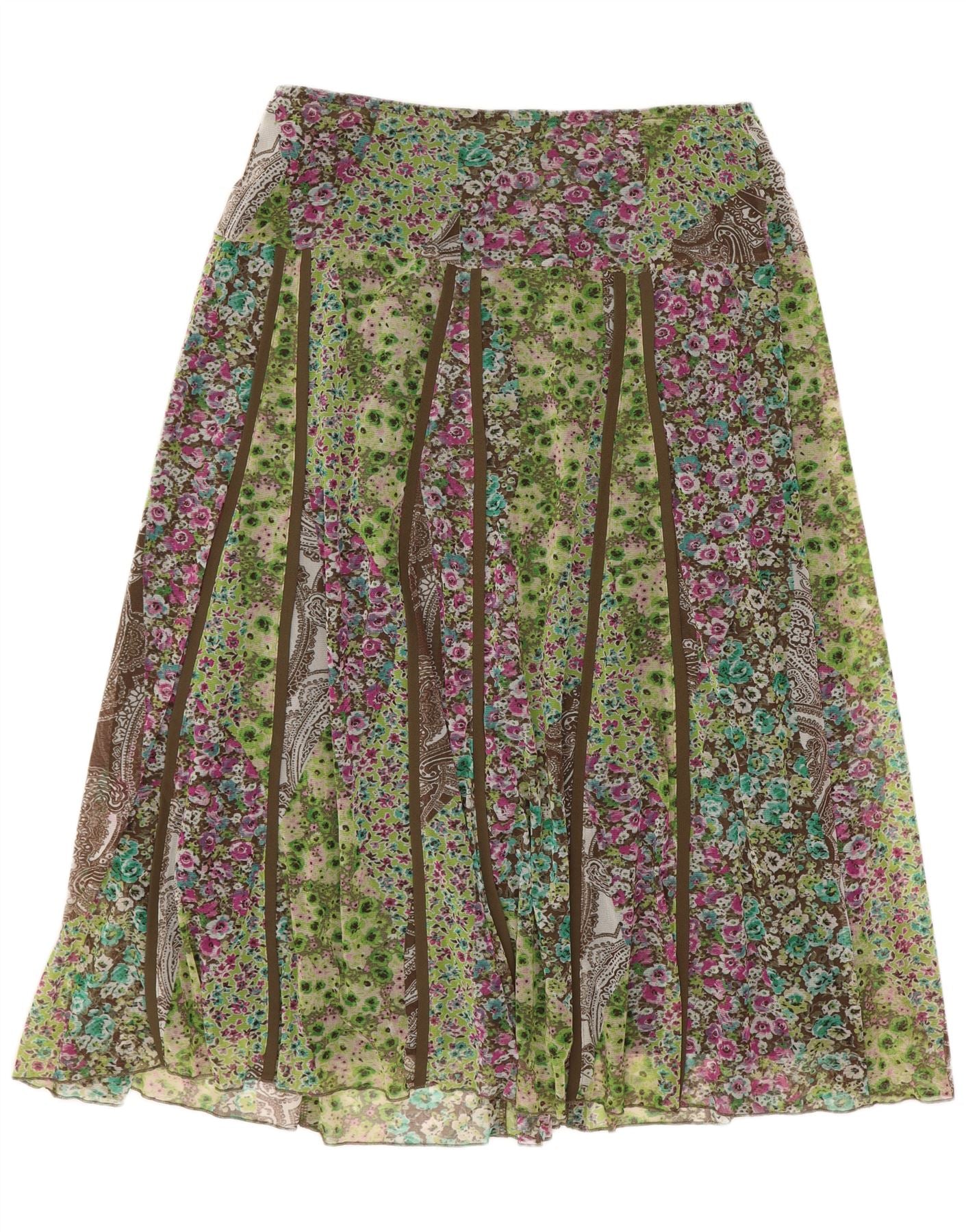 CARLA FERRONI Femme Jupe Évasée XL W36 Vert Floral Polyamide