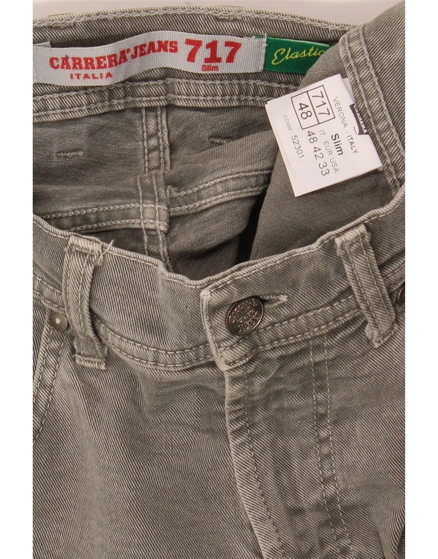 CARRERA Jean Slim 717 Homme IT 48 Moyen W33 L32 Gris Coton