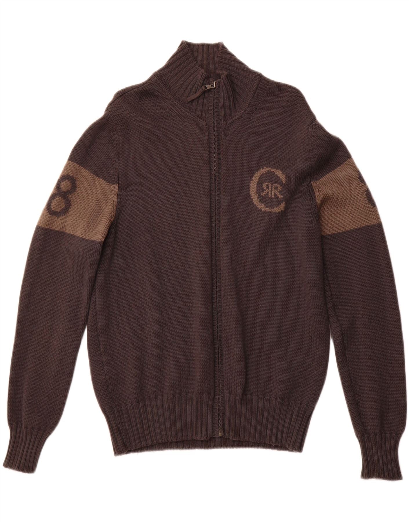 CERRUTI 1881 Pull Cardigan Graphique Homme Large Gris Colorblock Laine Vierge