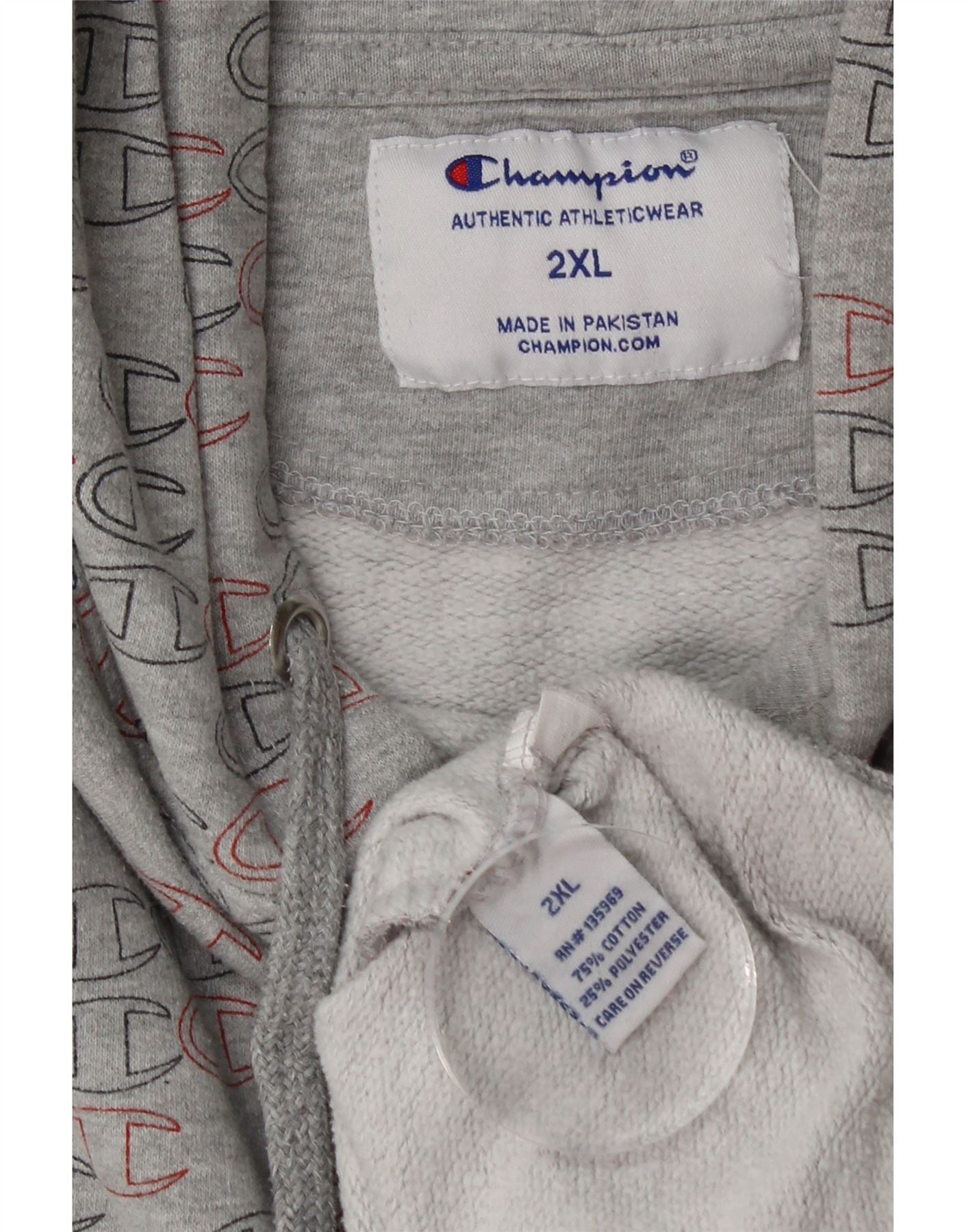 Home > Vêtements de champions vintage > Pour des hommes > Sweatshirt à capuche > Champion Pull à capuche graphique pour homme 2XL Gris Coton