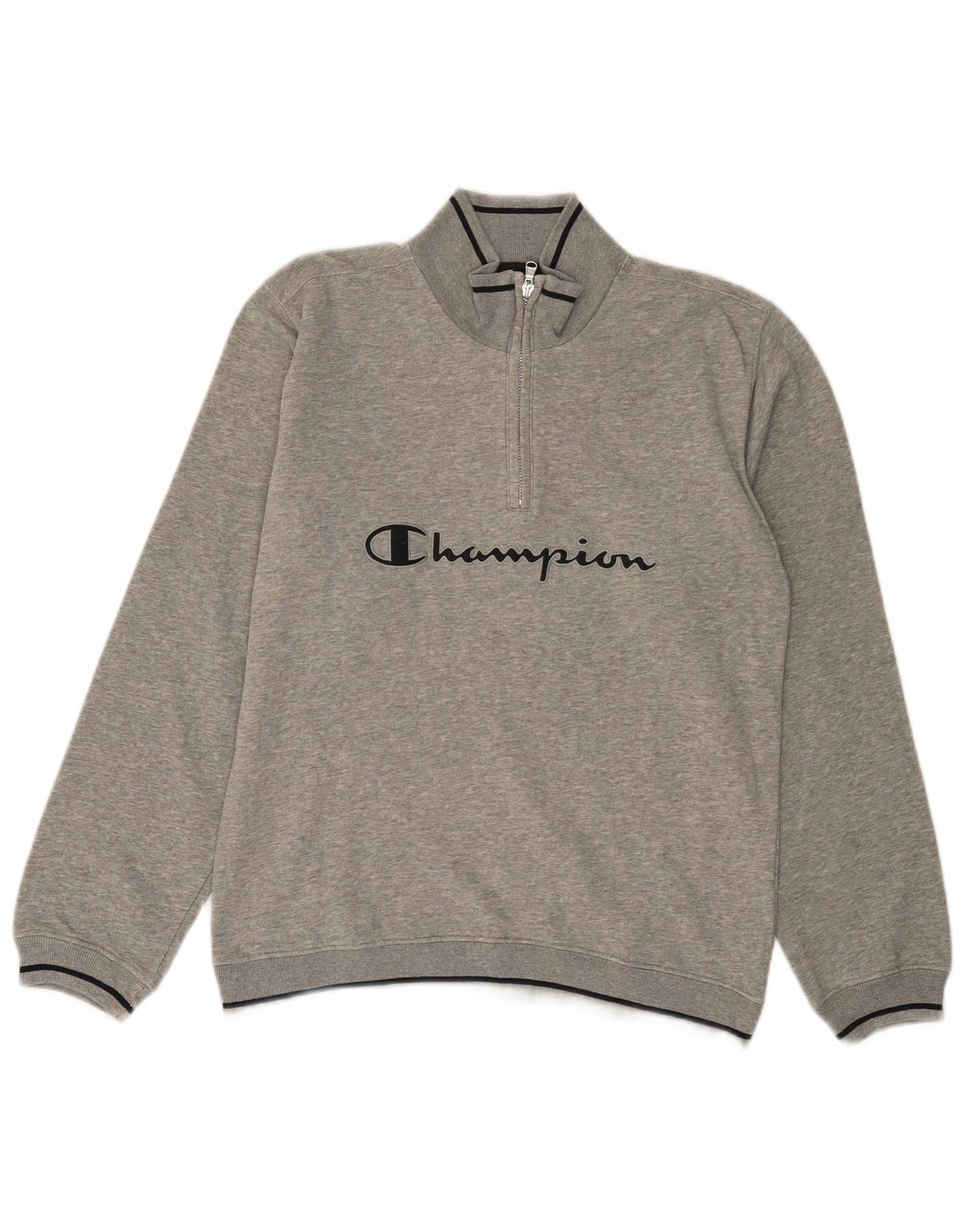 Home > Vêtements de champions vintage > Pour des hommes > Sweat-shirts > CHAMPION Sweat-shirt graphique à col zippé pour homme, petit, gris, coton
