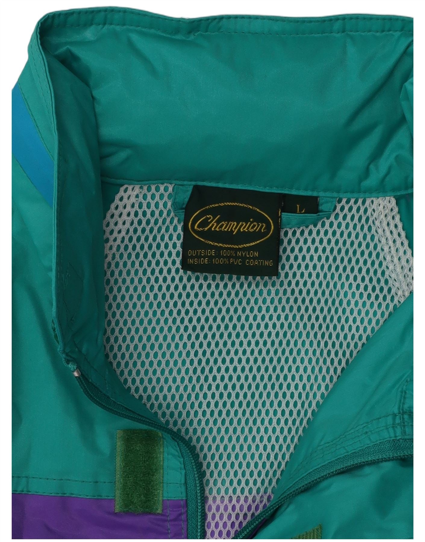 CHAMPION Veste de pluie à capuche pour homme UK 40 Large Turquoise Colourblock Nylon