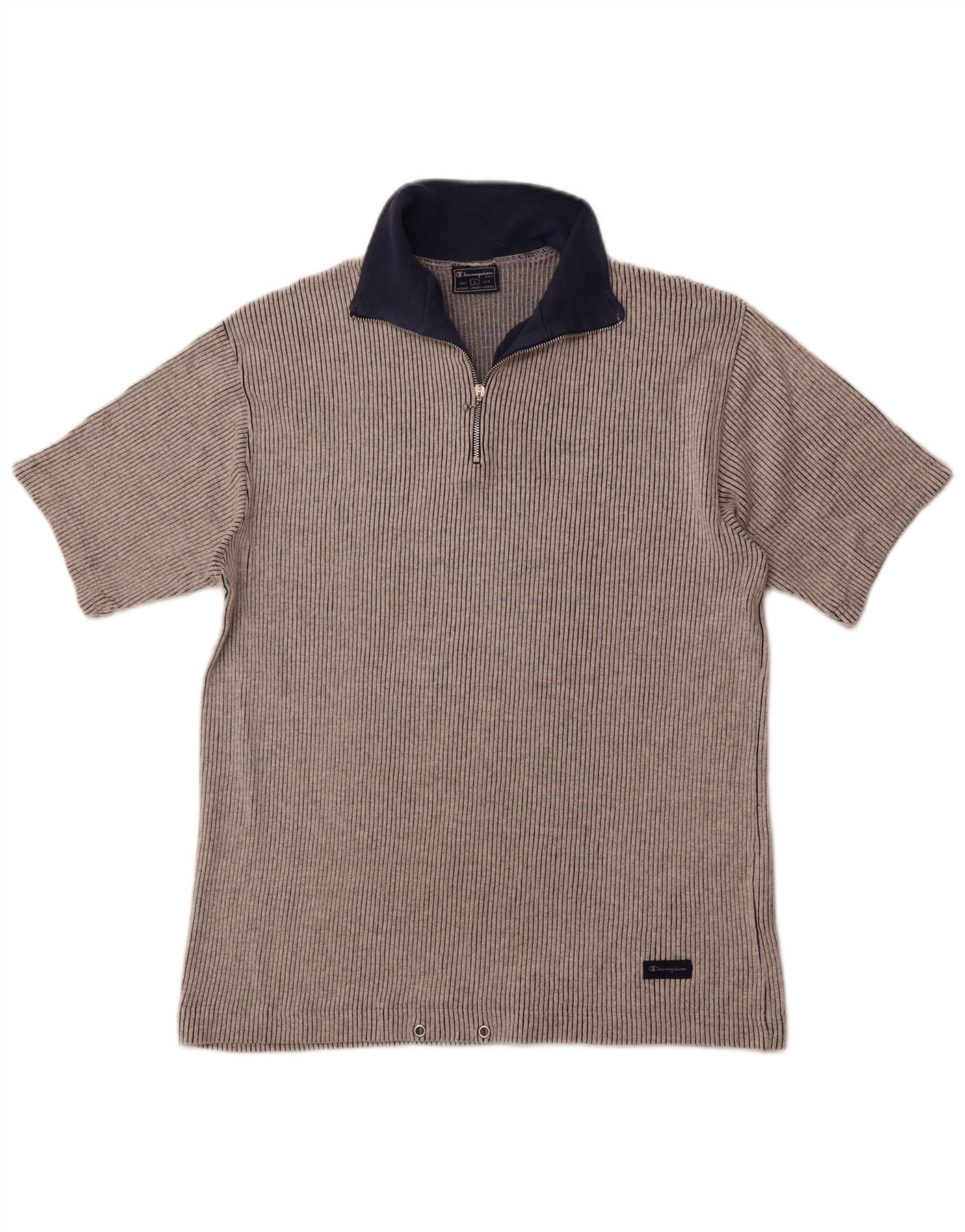 Home > Vêtements de champions vintage > Pour des hommes > T-shirts > CHAMPION T-shirt à col zippé pour homme en coton à fines rayures gris