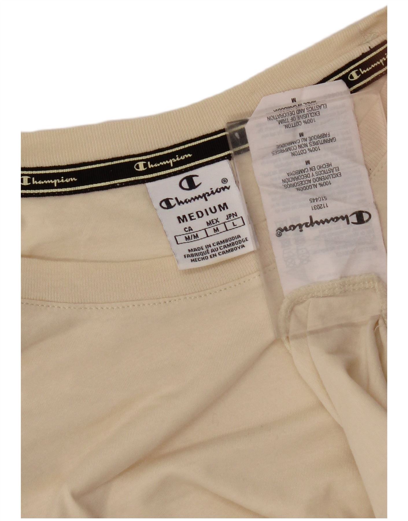 CHAMPION T-shirt court graphique pour femme UK 14 Coton beige moyen