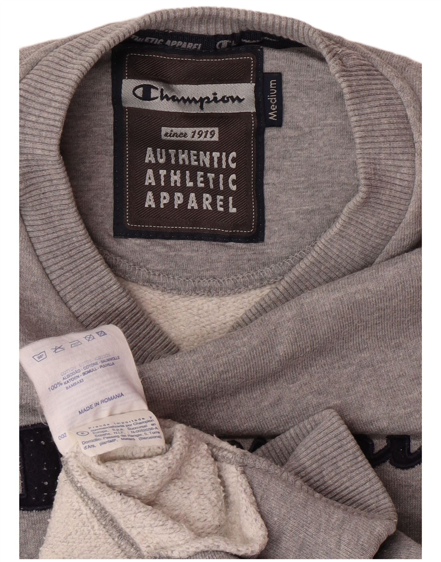 CHAMPION Womens Graphic Sweatshirt Jumper UK 14 Medium Grey Cotton
