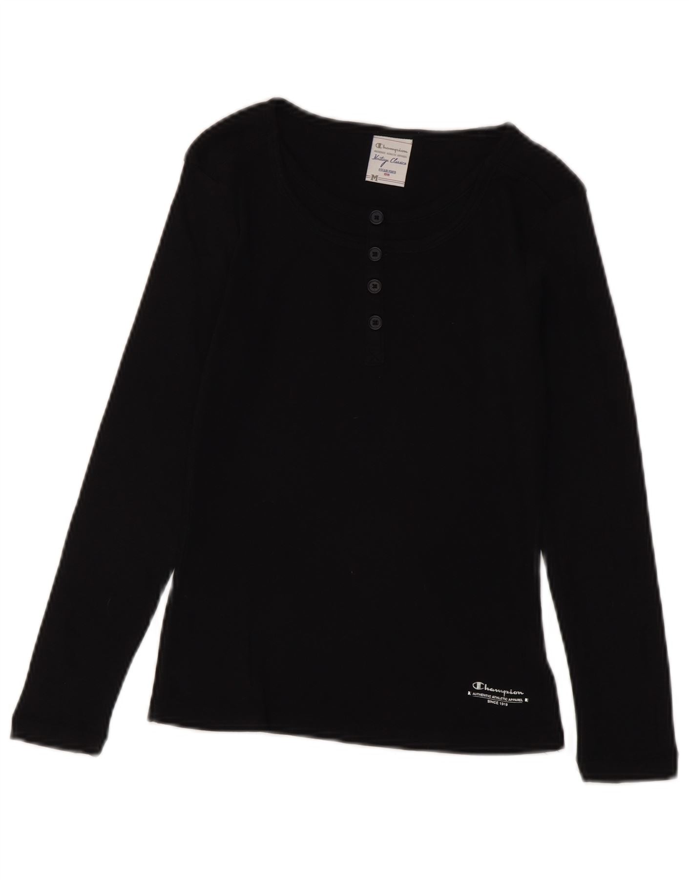 Champion Femme Heritage Classics Top Manches Longues UK 12 Coton Noir Moyen
