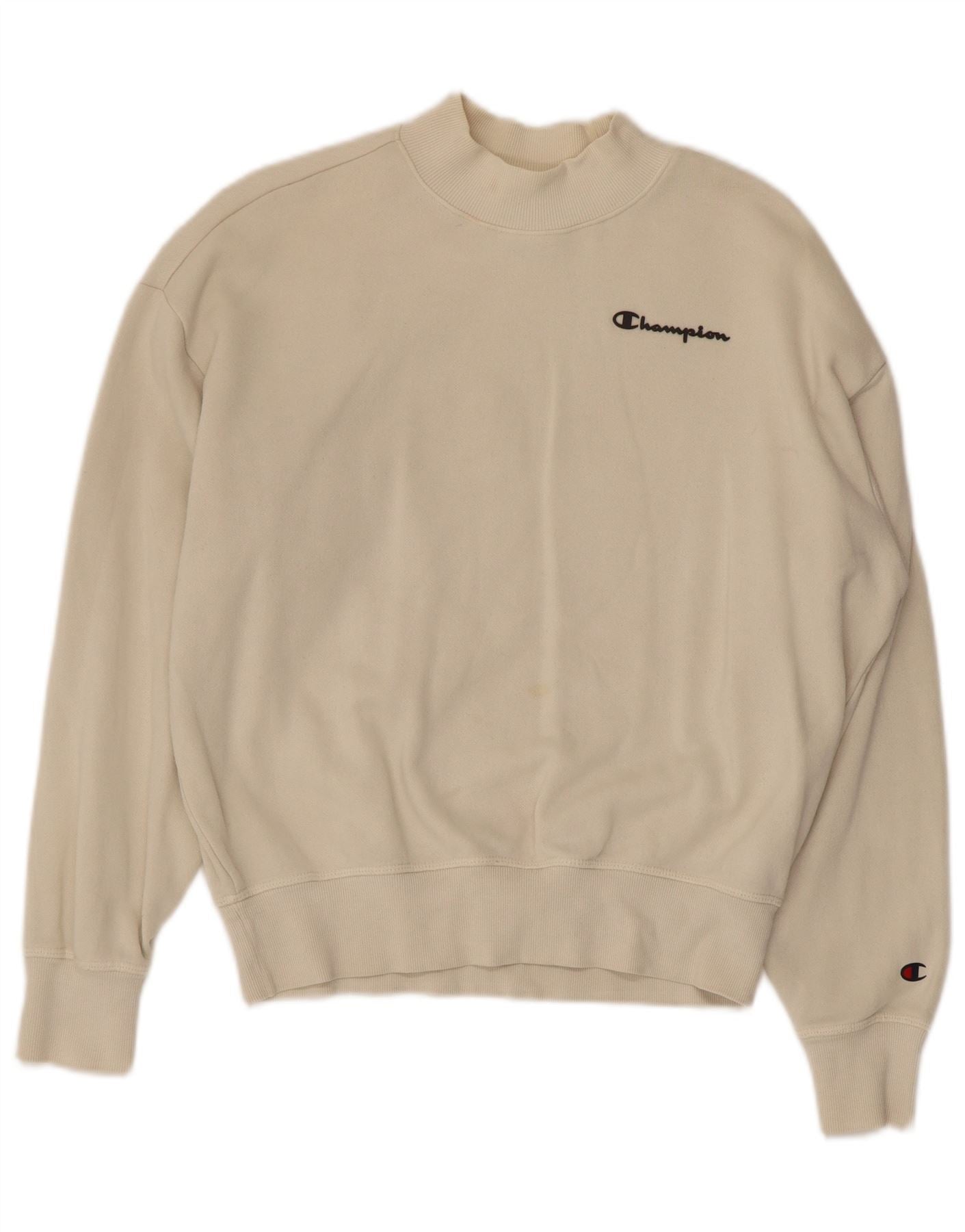 CHAMPION Womens Oversized Sweatshirt Jumper UK 10 Small Beige Cotton
