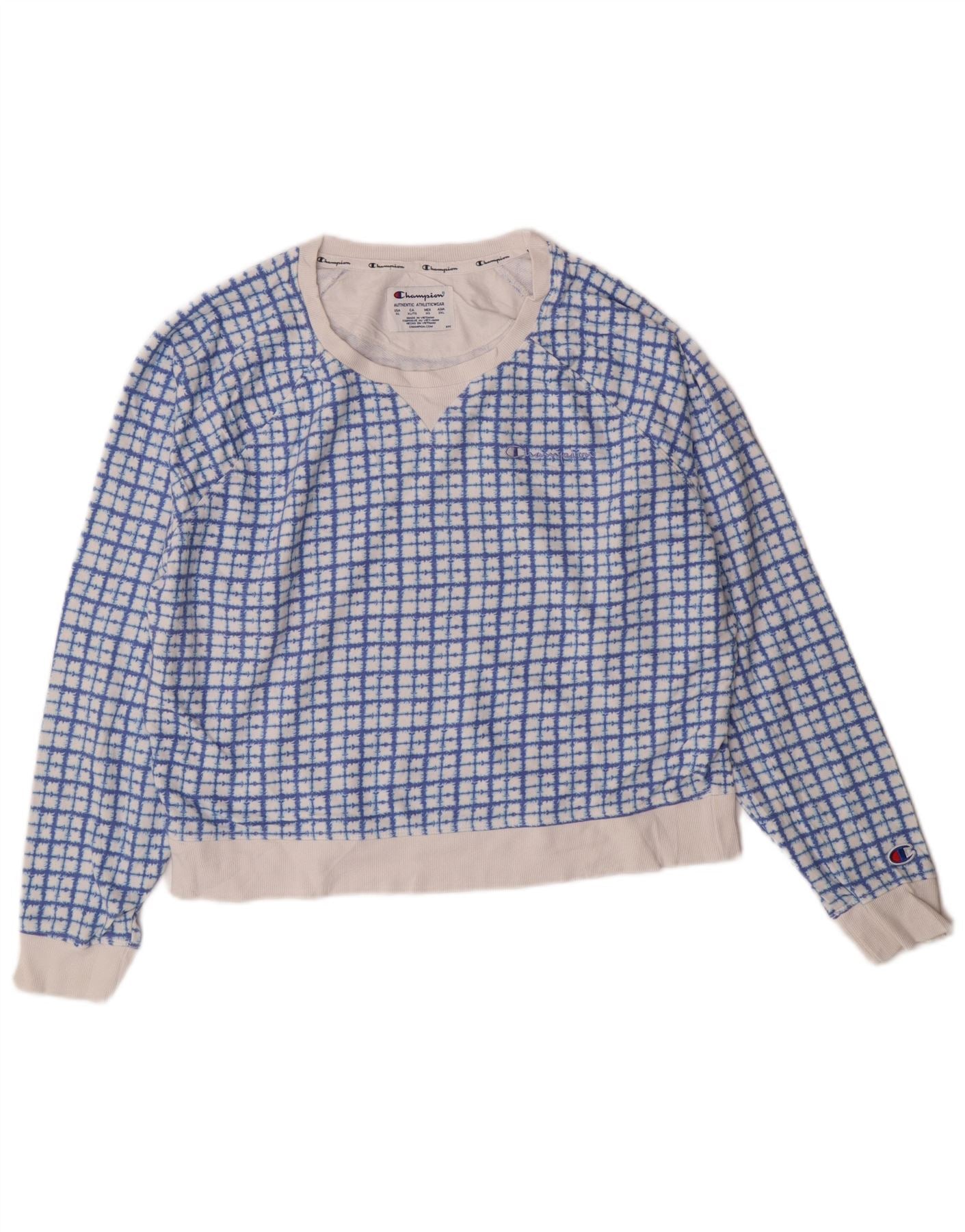 Champion Sweat-shirt pour femme UK 18 XL Bleu à carreaux en coton