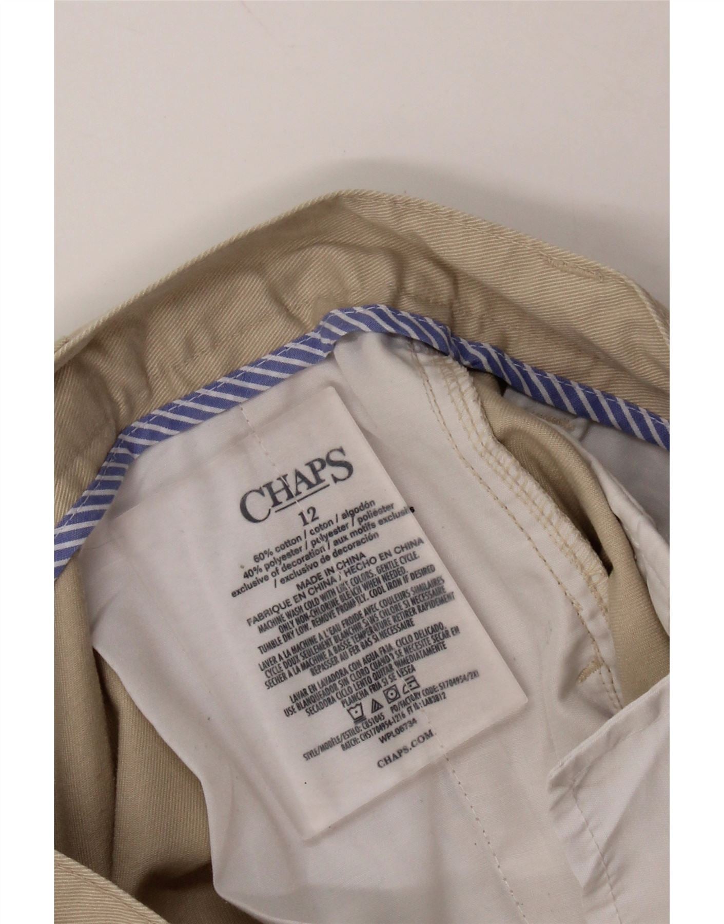 CHAPS Pantalon Chino Droit Garçon 11-12 ans W26 L26 Coton Beige