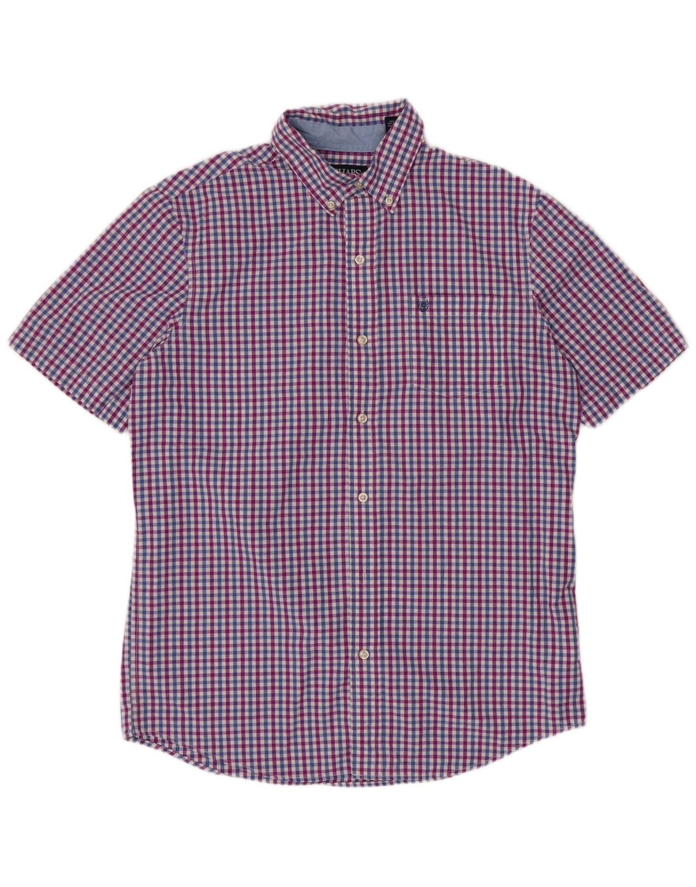 CHAPS Chemise à Manches Courtes Homme Facile d'Entretien en Coton Vichy Bleu Moyen