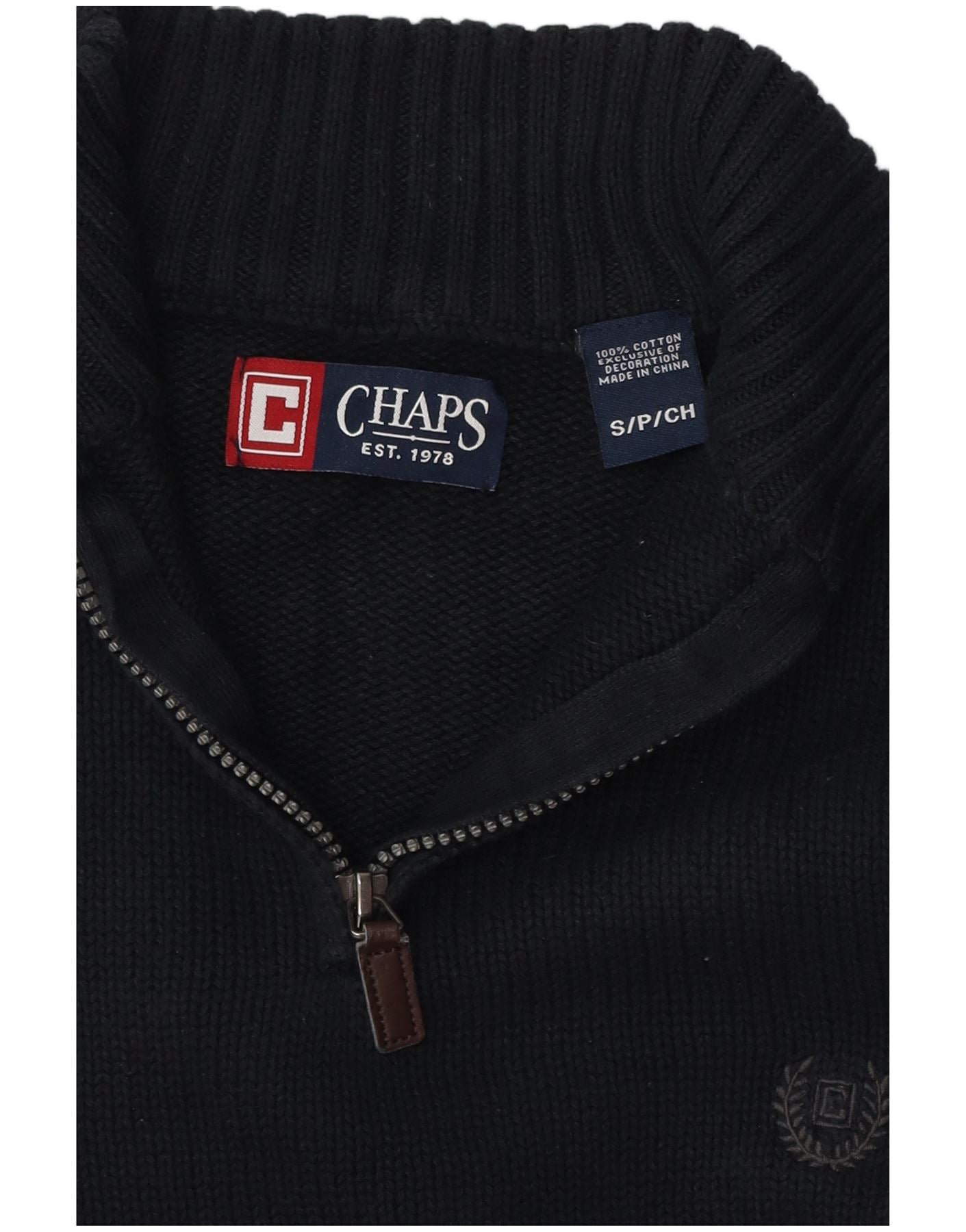 CHAPS Pull Col Zippé Homme Petit Bleu Marine Coton