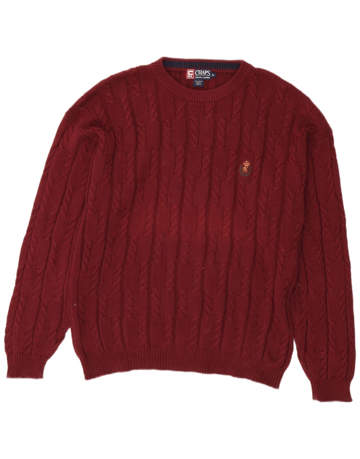 CHAPS RALPH LAUREN Pull ras du cou pour homme XL en coton bordeaux