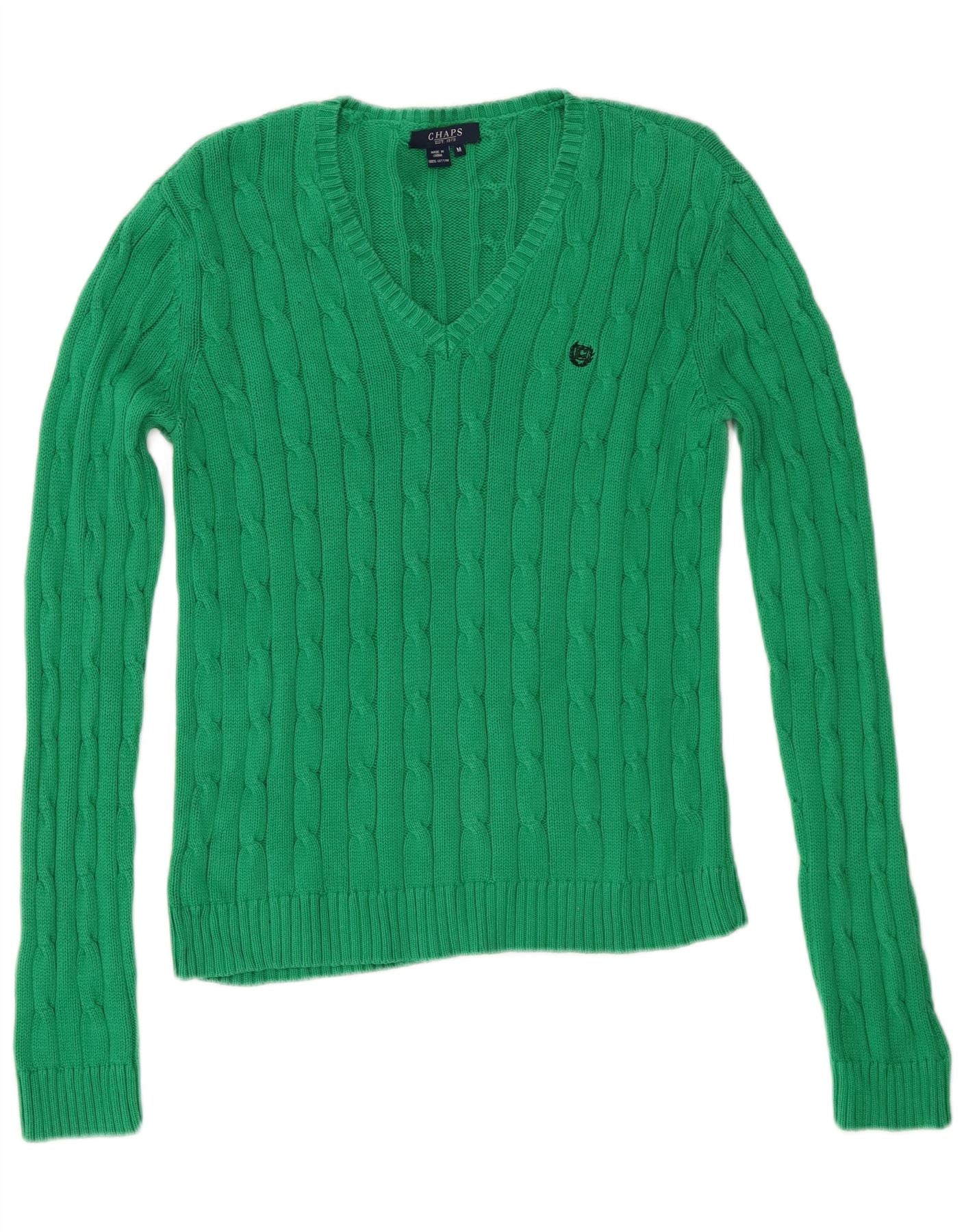 Chaps Pull col en V pour femme UK 12 Vert moyen Coton