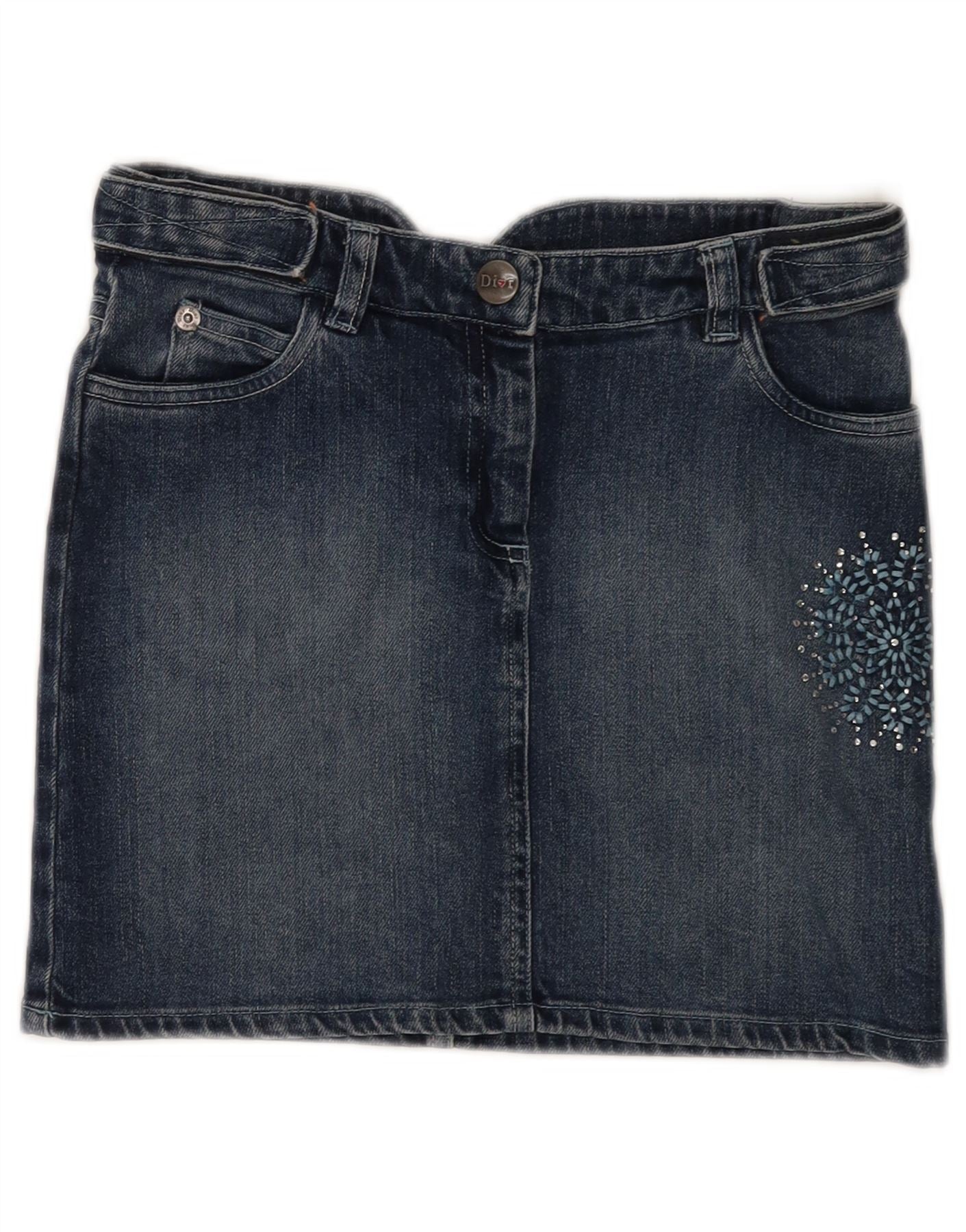 CHRISTIAN DIOR Mini jupe en jean fille 9-10 ans W25 coton fleuri bleu